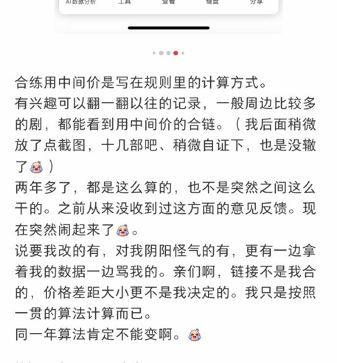 我也吃懂猫发财的瓜了,是因为她统计水龙吟周边超过了赴山海,水龙吟一个周边手链,有99的还有1999的,猫发财统计的时候取的平均值1099,因为这个被冲了,但事实上他一直这样统计的,以前的每部剧有不同售价的同款周边也都是取平均值,他是同一标准统计所有的剧,赴山海有不同售价的同款周边销售额,他也是这么统计的