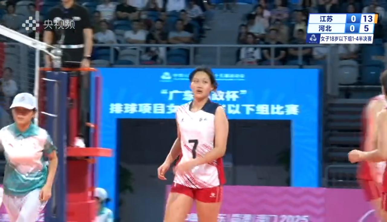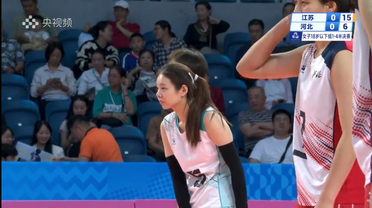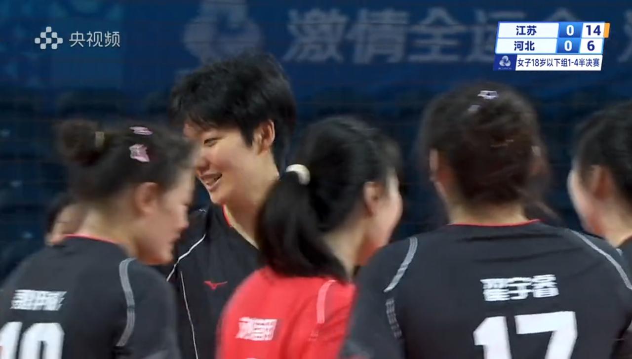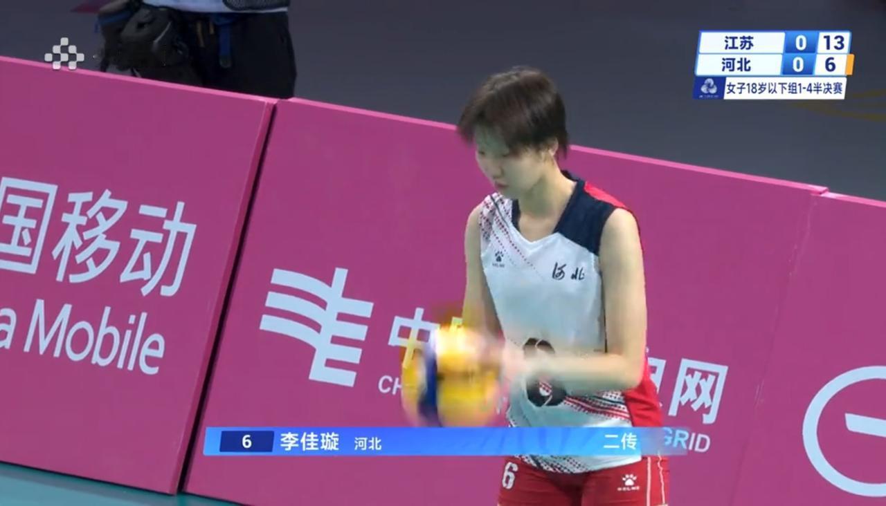 [U18女排全运会]半决赛:江苏——河北 实时战况: 17日下午16:30,全运会U18女半决赛江苏——河北的比赛准时打响。第—局开始,15:6,江苏领先。17:6,17:7,20:9,江苏一路领先,21:9,22:9,22:10,河北快攻。23:10,24:10,江苏拦网。25:10,魏伊杉扣球得分。江苏胜第—局,大比分1:0,江苏领先! 第二局比赛正在进行中……