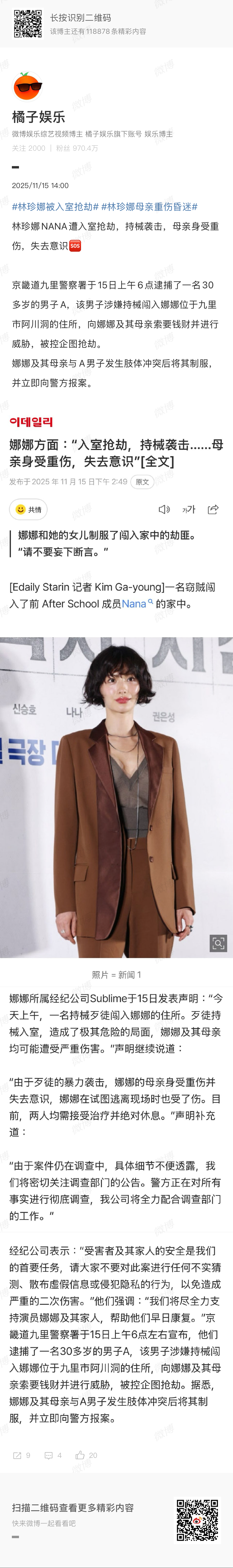 闯入林珍娜家里的劫匪被逮捕称不知道是艺人家里……