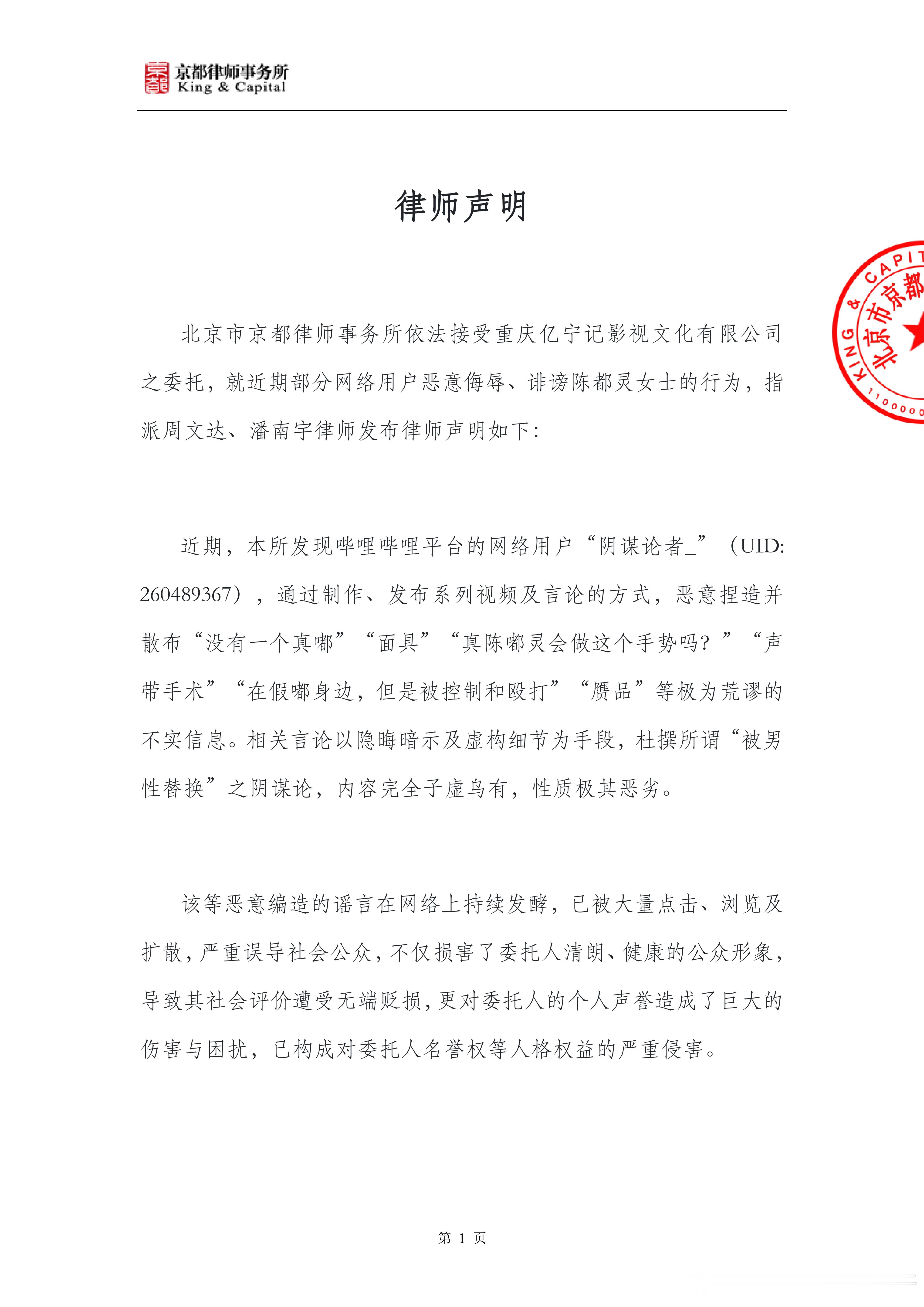 陈都灵告了造谣她被男性替换的网友!该用户称“没有一个真嘟”“面具”“真陈嘟灵会做这个手势吗?”“声带手术”“在假嘟身边,但是被控制和殴打”“赝品”等不实信息,称陈都灵“被男性替换”,现在的陈都灵是“假”的此人目前已经注销账号(p4-6)
