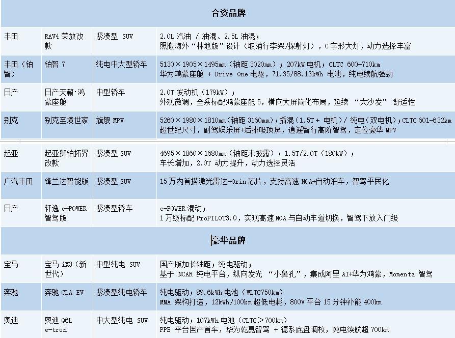 2025广州车展即将开幕,不少自主新能源车企将其作为自己新车的秀场。 汇总了下广州车展要上市/亮相的车型,国产新能源车成为主力军。 自主里小鹏X9、岚图泰山、新款享界S9、零跑A10等车型关注度较高。 合资品牌也在积极求变,日产天籁·鸿蒙座舱版就是极好的例子,打不过就加入成为合资生存下去的选择之一(或是最好选择)。 大家比较关注哪款车型呢?【来自懂车帝车友圈】