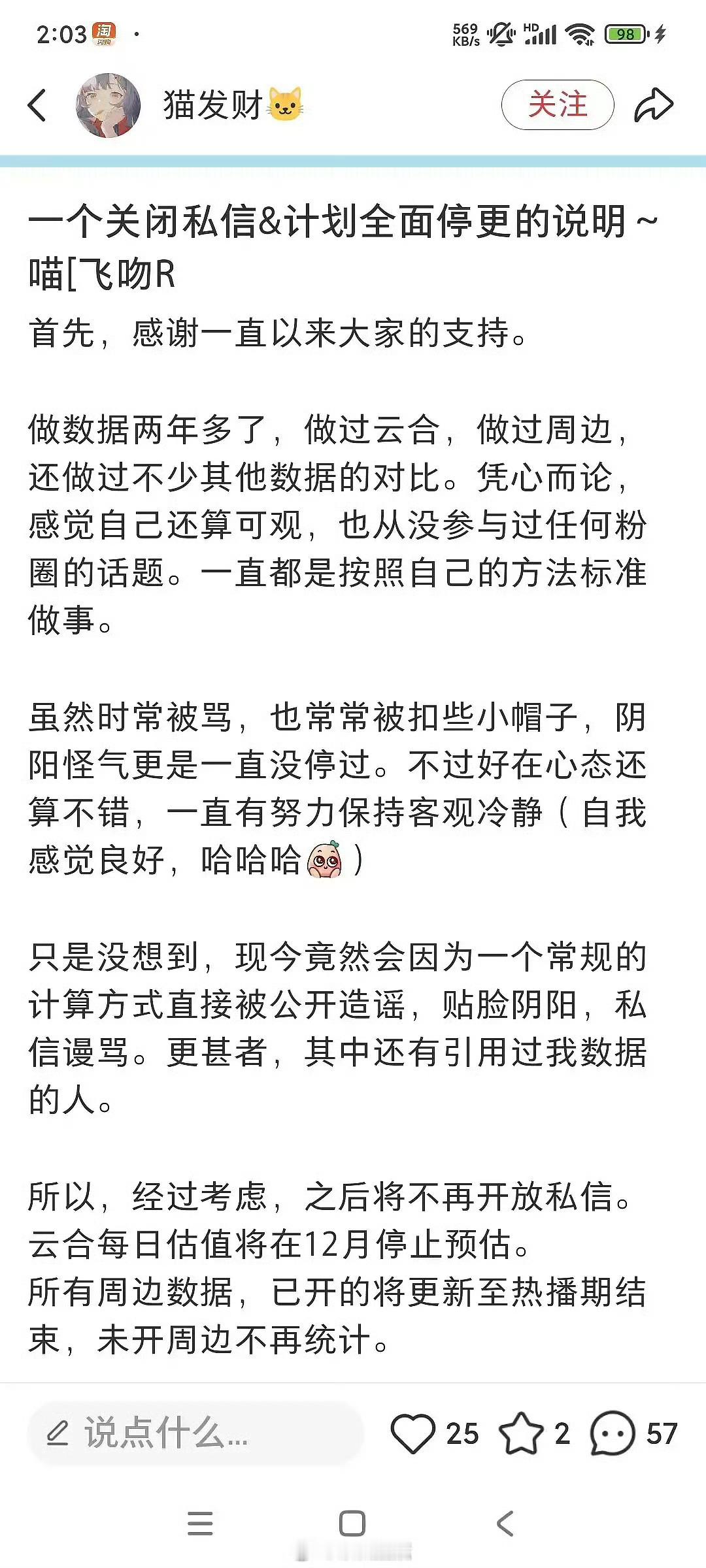 要停更了,表格清晰明了~猫发财被哪家冲了? 以后都是自制小表格了这个数据博主做的量又大,也不参与粉圈纷争…是粉丝双标惯了吗?到自家就说各种被打压,到别家就说各种水。这样的都把她赶走,不知道有些人在想什么啊