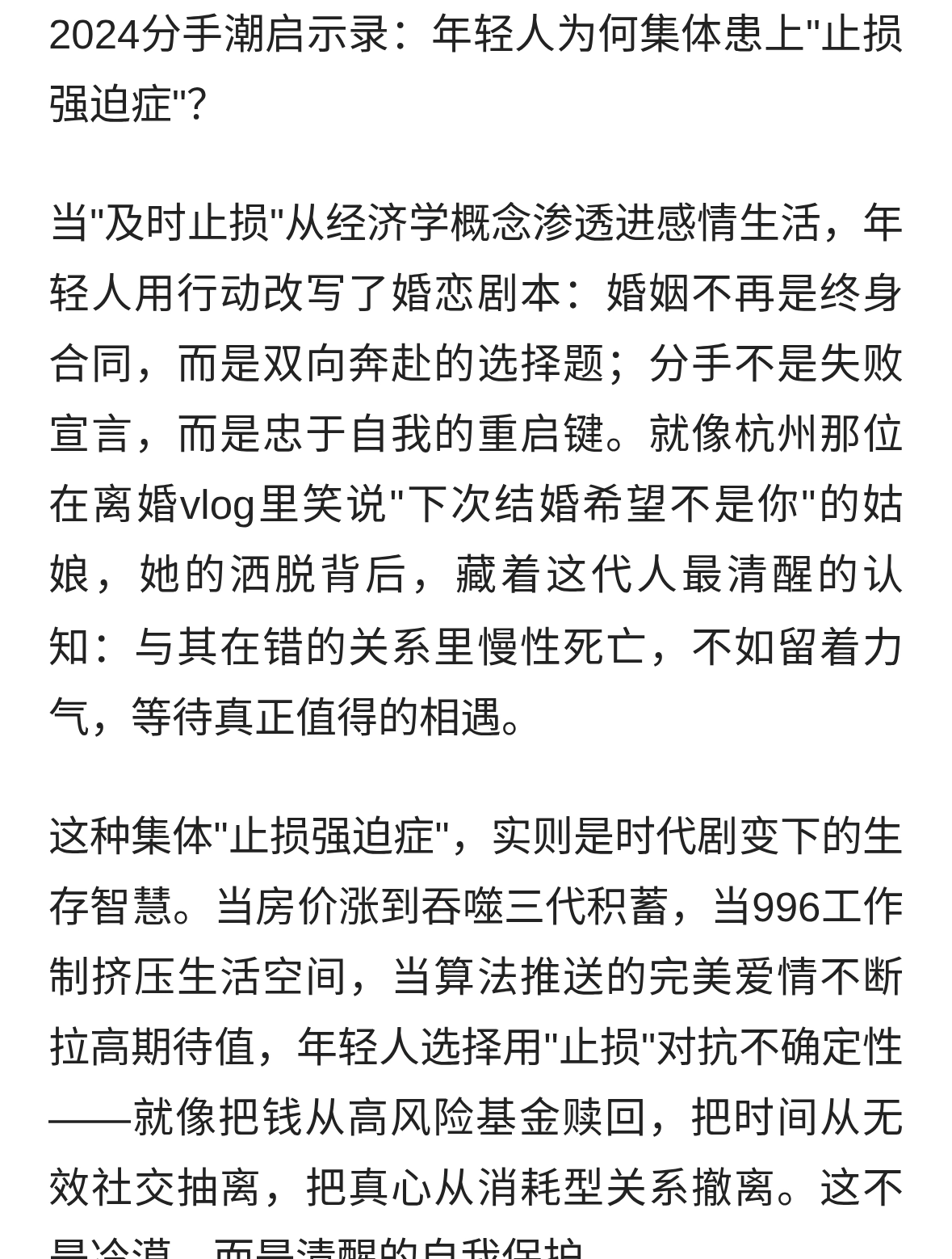 -“2024年第一波分手潮:为什么年轻人越来越敢‘及时止损’?”
