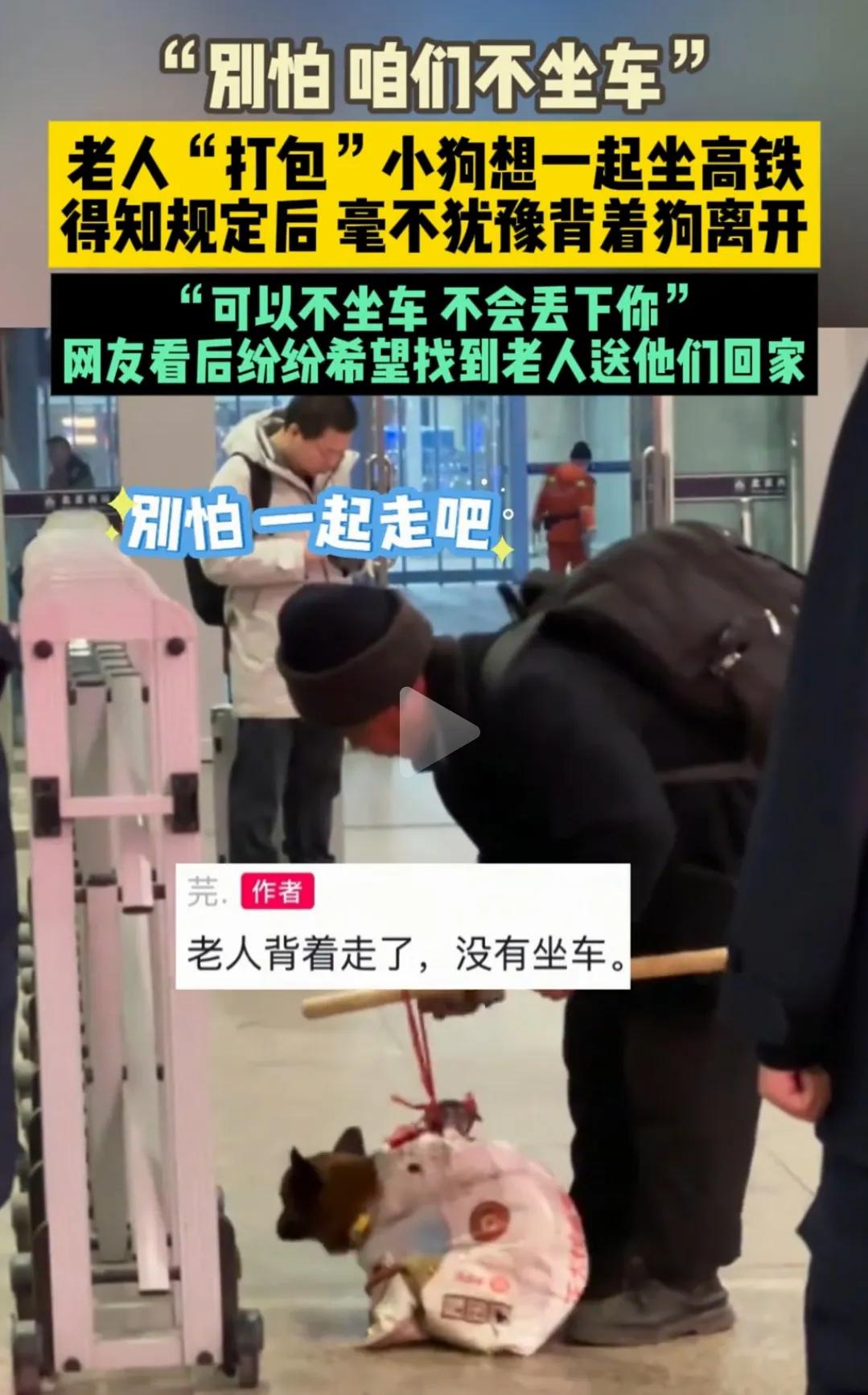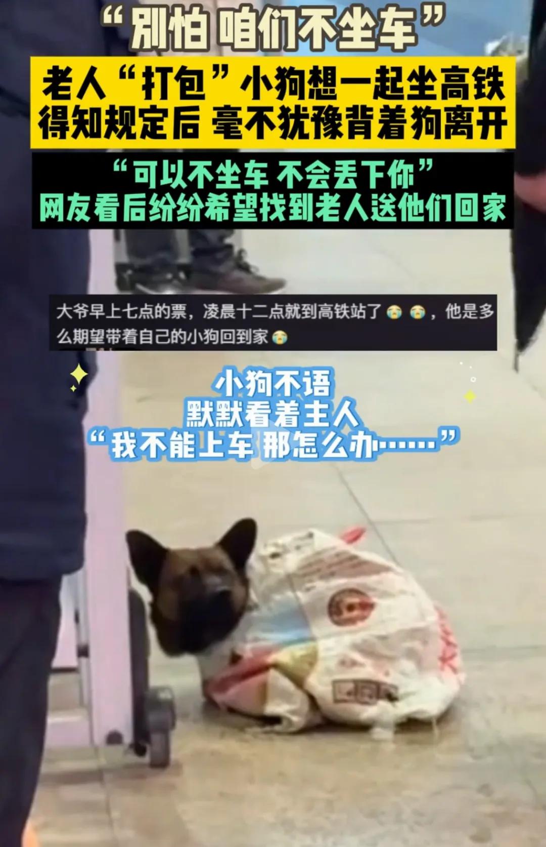 “走,回家,不坐了!”新闻报道10月29日北京一大爷带着小狗坐高铁回家,早上7点的票,凌晨12点就到高铁站等候了,可到站后却得知不能带小狗上车,大爷舍不得小狗,竟直接背着小狗走了,车也不坐了![黑线] 北京一位大爷提前七小时到达高铁站,却因随身携带小狗无法进站乘车,经过沟通无果,他最终放弃行程,背起装着小狗的布袋转身离去,这一幕背后,是许多宠物主在公共出行中遇到的现实困境。 带宠物返乡成为不少人的刚需,对许多家庭而言,宠物不仅是动物,更是情感寄托,但当主人想要带它们一起出行时,却常常面临公共交通的规则限制。 目前,高铁明确规定仅允许导盲犬随行,其他活体动物均不可随身携带,这一规定主要基于公共卫生,行车安全和其他乘客舒适度的多重考量,虽然合情合理,却让宠物主人不得不寻找其他解决方案。 宠物托运服务虽然可行,但封闭陌生的运输环境可能引发动物应激,专业寄养机构虽然能提供照料,但宠物可能因环境突变或思念主人而产生焦虑,这正是越来越多人宁愿选择更麻烦的方式,也要亲自带着宠物出行的原因。 个别城市试点在非高峰时段允许小型宠物搭乘公共交通,部分网约车平台也推出了“携宠出行”特色服务,对于长途出行,专业的宠物运输公司能提供全程护航,有效降低运输风险。 选择有资质的陆地运输服务,或考虑宠物专车等点对点服务,无论选择哪种方式,都应提前让宠物熟悉航空箱或运输笼,减轻它们的紧张感。 宠物的出行难题,需要社会各界共同推动解决,运输机构可以考虑推出更人性化的宠物运输方案,公共场所也可以增设宠物友好区域,这些举措将让负责任的主人享有更多便利。 万物皆有灵,大爷的不离不弃,让人值得敬重。 “看到大爷就像看到去年的自己,当时抢不到宠物托运的票,最后一咬牙,直接打了个顺风车,带着我家柯基从北京一路到广州,花了将近两千块,虽然肉疼,但看到狗子能安心待在身边,觉得一切都值了。规矩是死的,但感情是活的。” “给大爷的爱心点赞,但规矩还是要遵守的,高铁是密闭的公共空间,万一有乘客怕狗,对狗毛过敏,或者小狗受到惊吓叫唤,甚至发生意外,都会严重影响其他人的出行体验,公共政策需要权衡各方利益,不能只考虑单方面的需求。” “这件事其实反映了一个巨大的市场需求,为什么铁路部门不能考虑开设一两个‘宠物友好车厢’就像以前的吸烟车厢一样,集中管理,满足特定人群的需求,或者像一些国家的长途火车,有专门的宠物托运舱位,主人可以定时去查看。” “根据现行的《铁路旅客运输规程》,除了导盲犬,其他活体动物确实不能随身带上火车,大爷的情况,其实可以尝试办理‘行李车托运’,不过这个手续比较麻烦,需要检疫证明,而且也不是所有车次都开通了这项服务,希望未来在宠物出行这方面,法规和服务能更人性化一些。” 如果未来政策有望优化,您更倾向于支持以下哪种方案来更好地解决携宠出行难题?是开设专门的“宠物车厢”,是规范和发展专业的宠物托运服务,还是鼓励推出更多“携宠”主题的网约车/顺风车选项? 信源:幸运首闻
