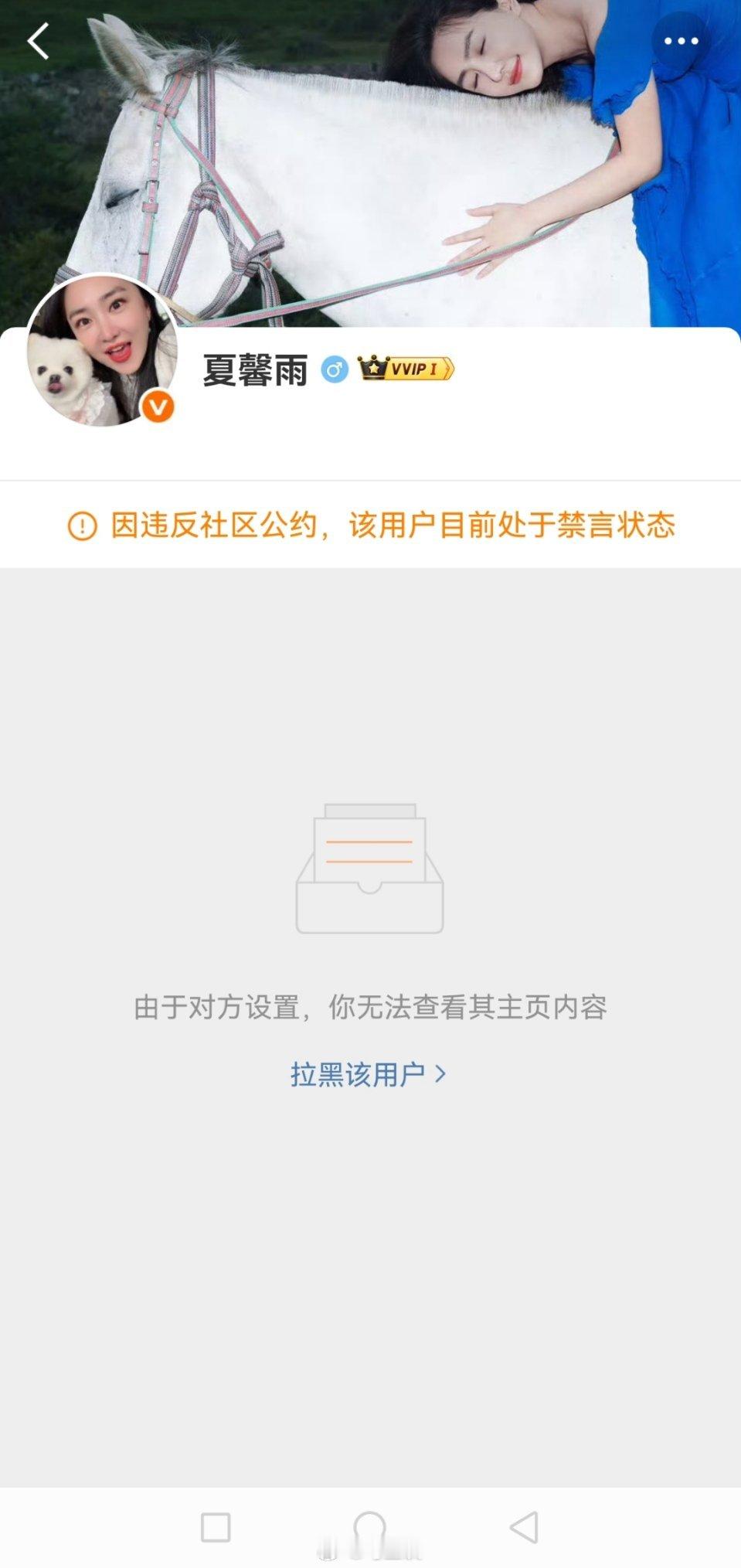 夏馨雨再次被禁言30天。这是第几次了?看看她这次发的和以往发的,像她这种账号,应该全网销号!