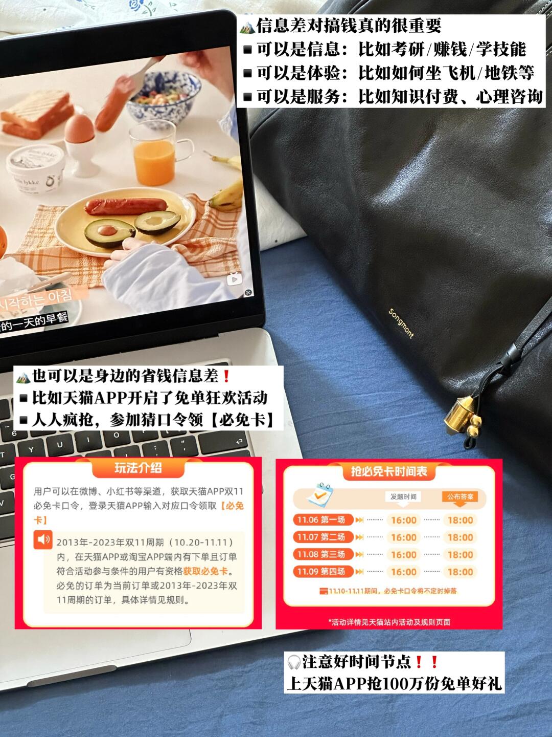 ▪️很多节点信息差容易错过,最近在天猫买秋冬用品时,我发现有免单活动,参与猜口令就有机会领“必免卡”,玩法分享给大家