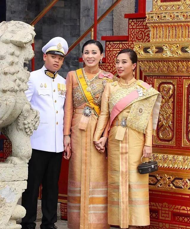 颂妃和女儿走在一起,表情随意,大概是她没在意的人了。苏提达王后和继女继子合影,笑得那个叫做贤惠。泰王的女人就是不一样,有能力还要有姿色。