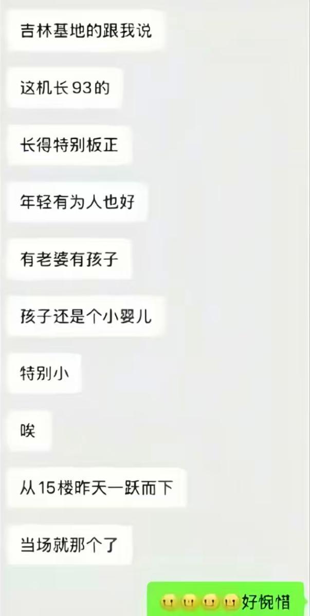 业余时间经常参加志愿者活动,是个有十分有爱心的大男孩。 而且十分有责任心,在疫情期间,放弃疗养假期,主动备份,如果有同事发热飞不了,他随时替补。 他不但是南航的机长,还是一名健身爱好者以及业余cos,在工作之余经常和朋友一起参加各大漫展,看得出对cos很热爱。 他的平台账号粉丝只有一百多个,很遗憾以这样的方式认识。 本来有大好的前途,不知怎么就钻了牛角尖,以这样惨烈的方式结束生命,唉,劝大家退一步海阔天空,忍一时风平浪静,遇事多想想爱你的家人们吧!