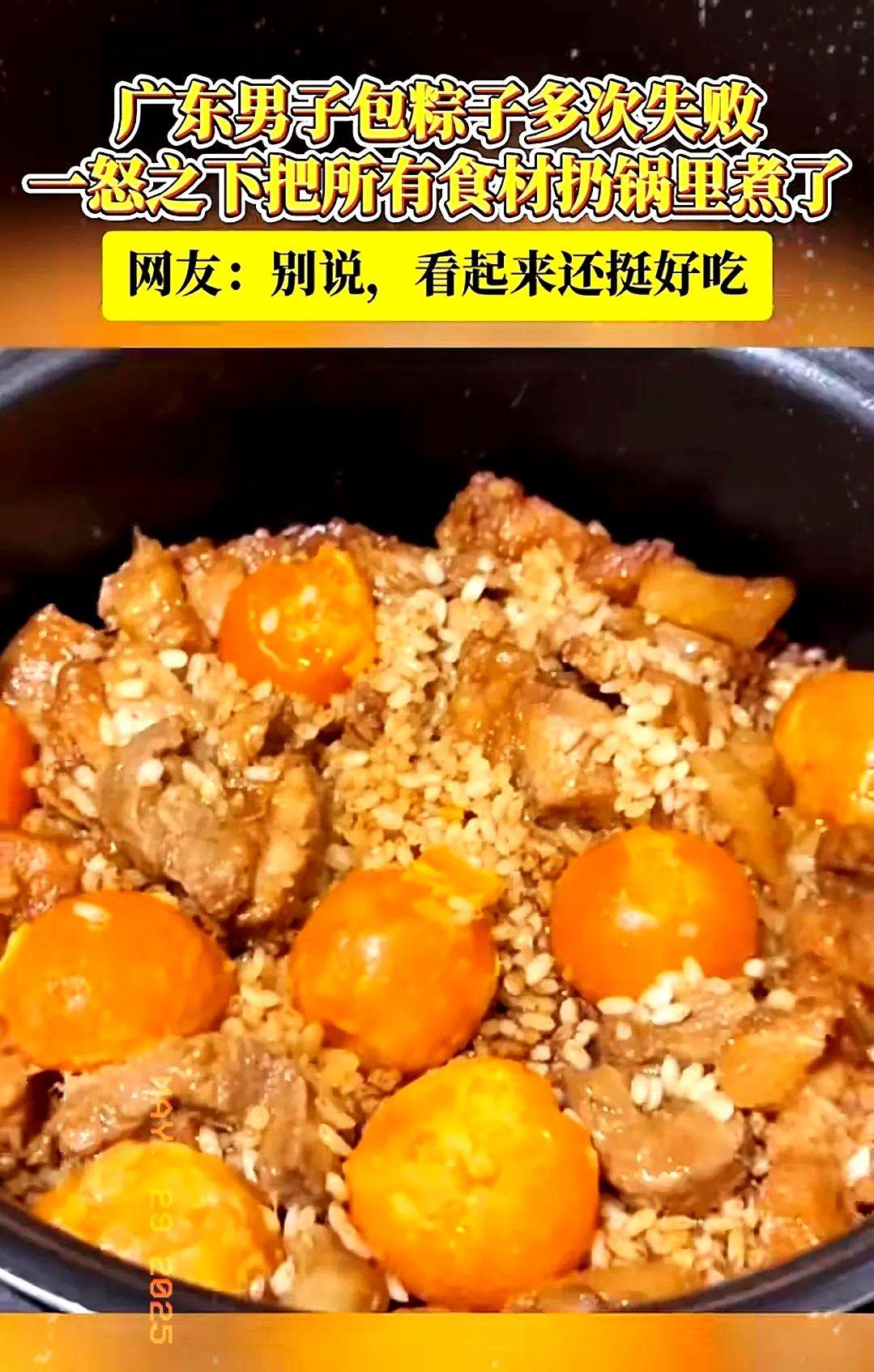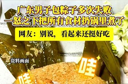 “太惊喜了!”5月29日报道广东一男子包粽子多次失败,一怒之下将所有食材全部倒进锅里煮了,没想到煮熟后还真有妈妈包的粽子味道,网友也说,看起来就好吃,要是盖几片粽叶一起煮,味道就更好了![黑线] 他本想自己包粽子,试了好几次都没成功,不是米漏出来,就是形状散架,最后他干脆把准备好的糯米,猪肉,蛋黄所有材料统统倒进锅里,一锅煮了。 满屋都是粽叶混合糯米的香气,居然很有传统粽子的感觉,他笑称,这真是歪打正着,本来确实想用粽叶,但一时气恼全扔了,也不好意思再捡回来,虽然做法“非传统”,结果却意外地好吃。 但包起来确实需要技巧和耐心,现在生活节奏快,很多人没时间慢慢学,有的煮成一锅粥,有的绑得像礼物盒,还有的直接用杯子当模具。 虽然样子五花八门,但大家乐在参与,重要的是亲手做食物的过程,和与家人朋友分享的心意,粽子的核心,或许不只是外形,更是那股熟悉的香味和团聚的氛围。 做事不要在于外表,努力就好。 “这算什么粽子,这分明就是有梦想的糯米饭,传统粽子之所以是粽子,就是因为粽叶在长时间捆扎和水煮过程中,把独特的清香完全渗透到糯米里了,形式大于内容,灵魂没了呀。” “作为一个广东妈妈,我想说这孩子误打误撞,其实摸到了门道,粽子的核心不就是糯米,他这样做,虽然外形不像,放几片粽叶一起煮,味道肯定会更上一层楼,下次再接再厉。” “我们这代人有我们自己的活法,非要把传统文化搞成一种负担和门槛,反而会让年轻人敬而远之,像这样用轻松的方式参与进来,体验一下制作过程,我觉得是好事,总比只会买现成的,对节日内涵一无所知要强吧。” 你是坚守传统包法的‘手艺派’,还是支持这种不拘小节的‘创新派’?你觉得过节,是形式更重要,还是心意和参与感更重要?