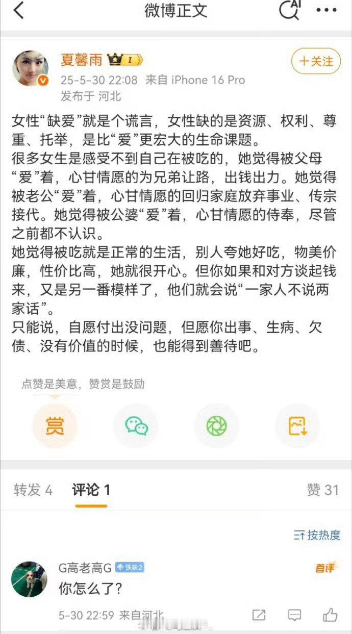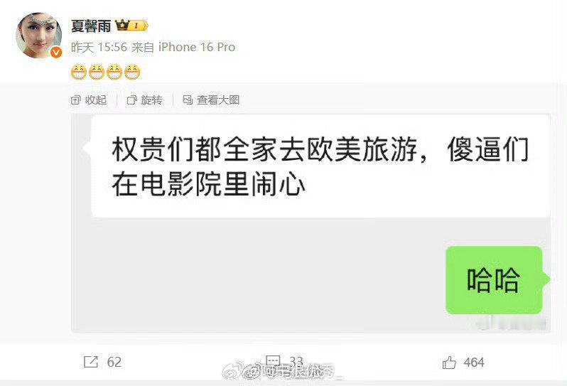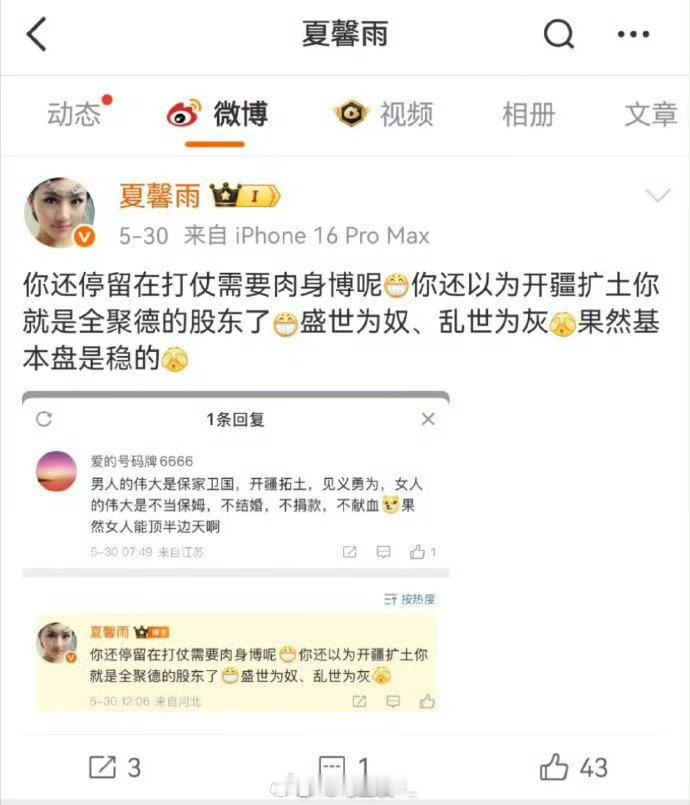 夏馨雨再次被禁言30天。这是第几次了?看看她这次发的和以往发的,像她这种账号,应
