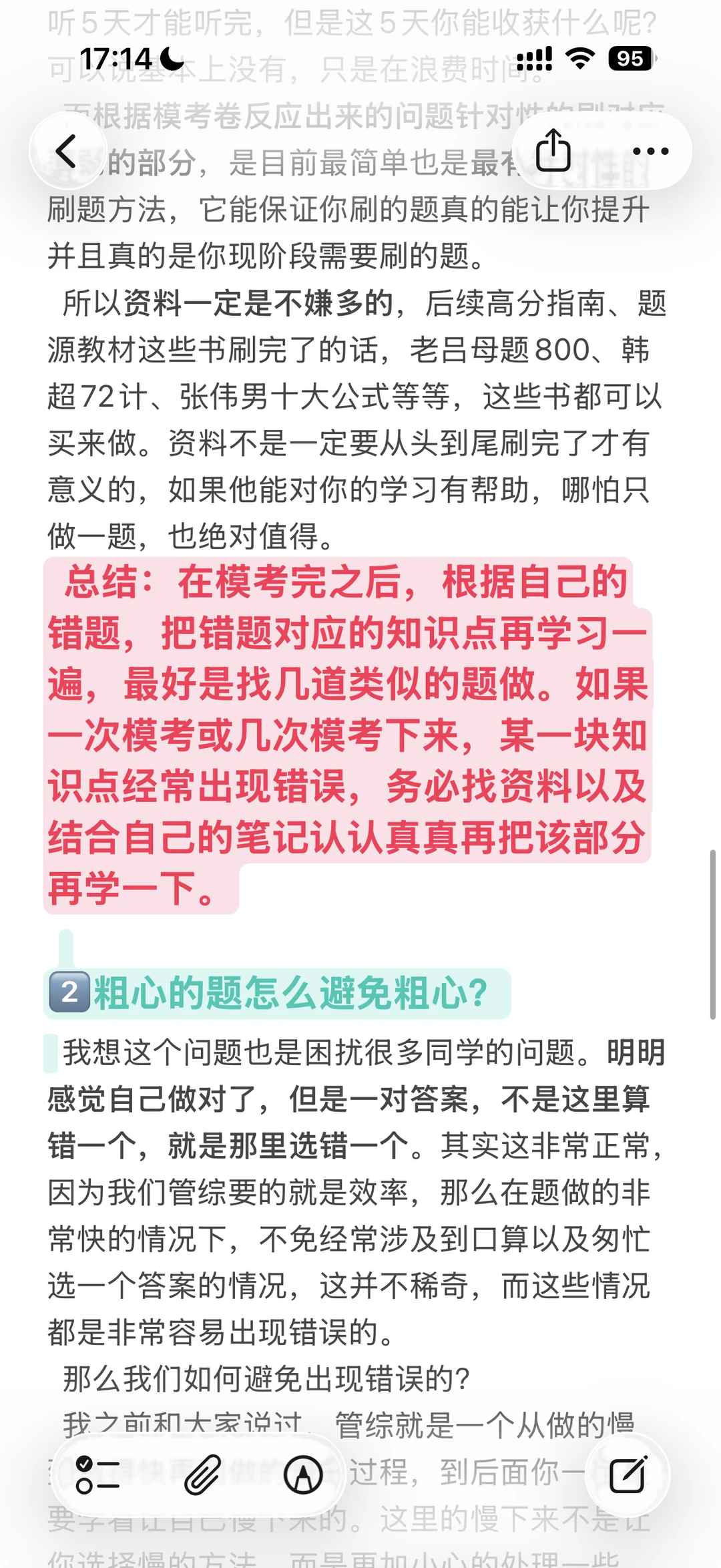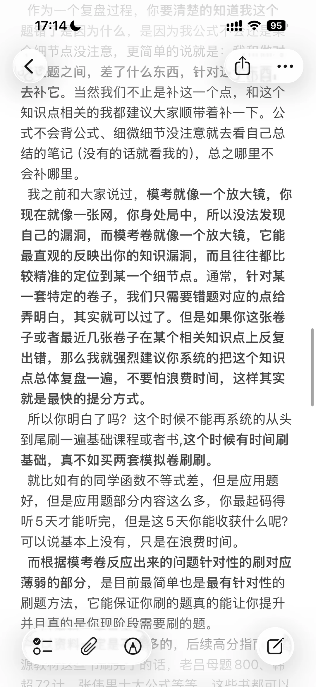 模考反复错在哪块,就重点补那块。此时再去系统重学基础,比做两套模拟卷有效率低多了。