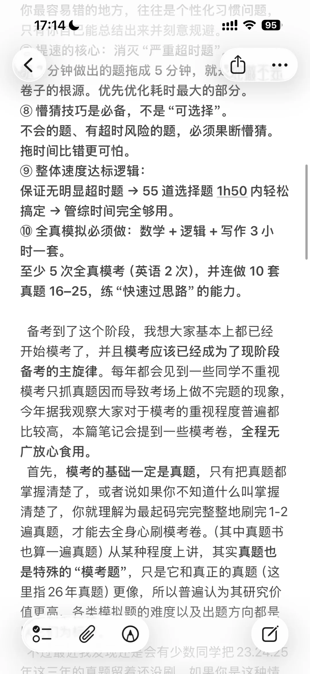 ⑩ 全真模拟必须做:数学 + 逻辑 + 写作 3 小时一套。