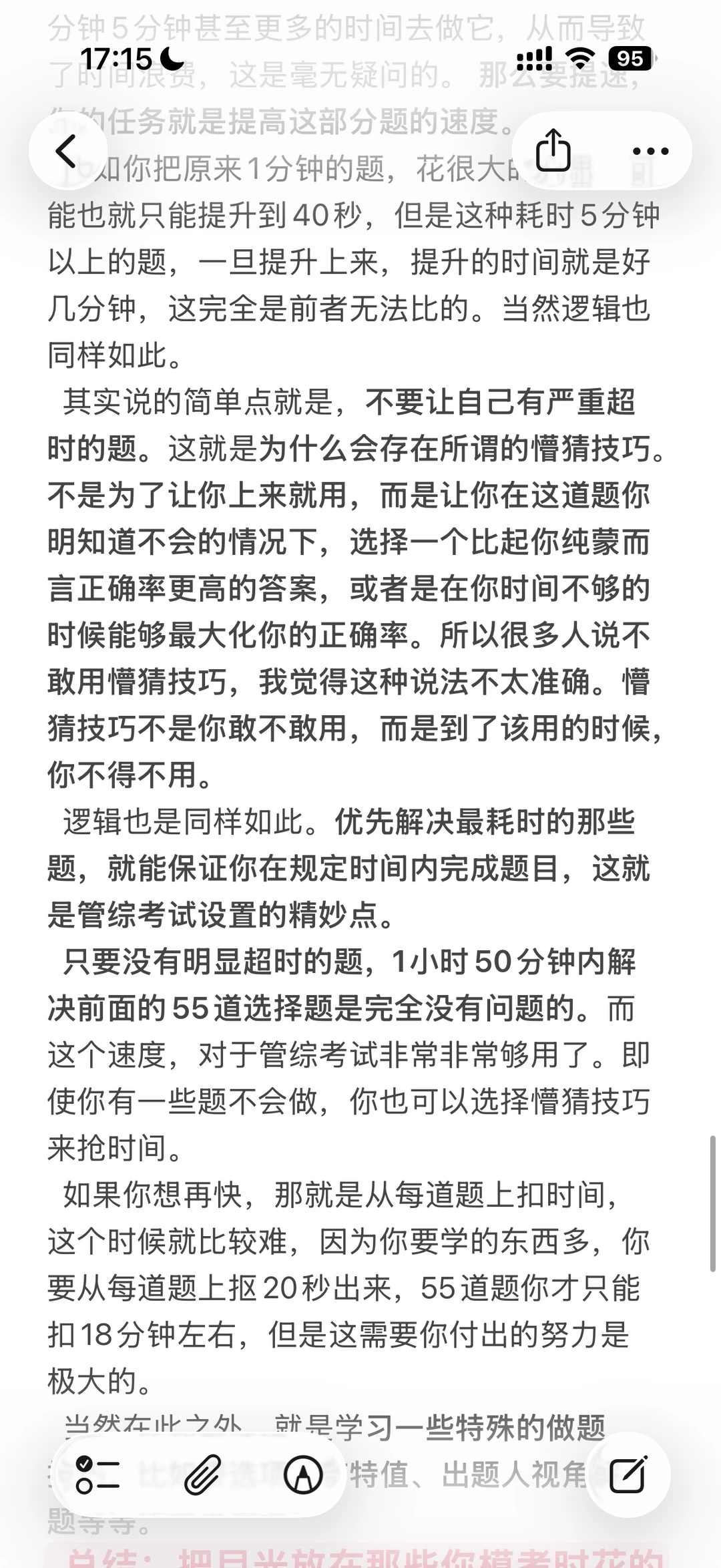 保证无明显超时题 → 55 道选择题 1h50 内轻松搞定 → 管综时间完全够用。