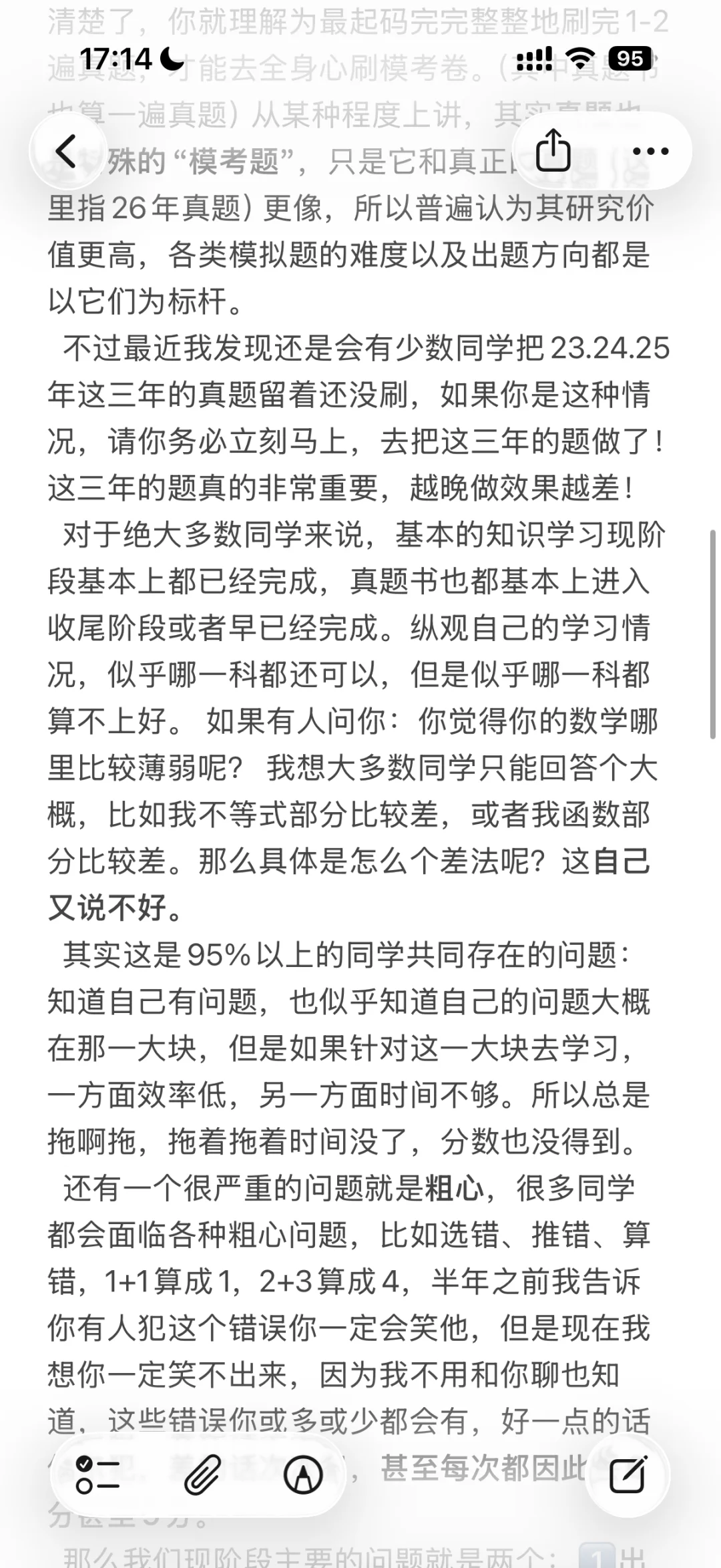 模考是“放大镜”,真题是“照妖镜”。没刷透 16–25 (起码21-25)年真题,一切模考都白搭,越晚做越亏。