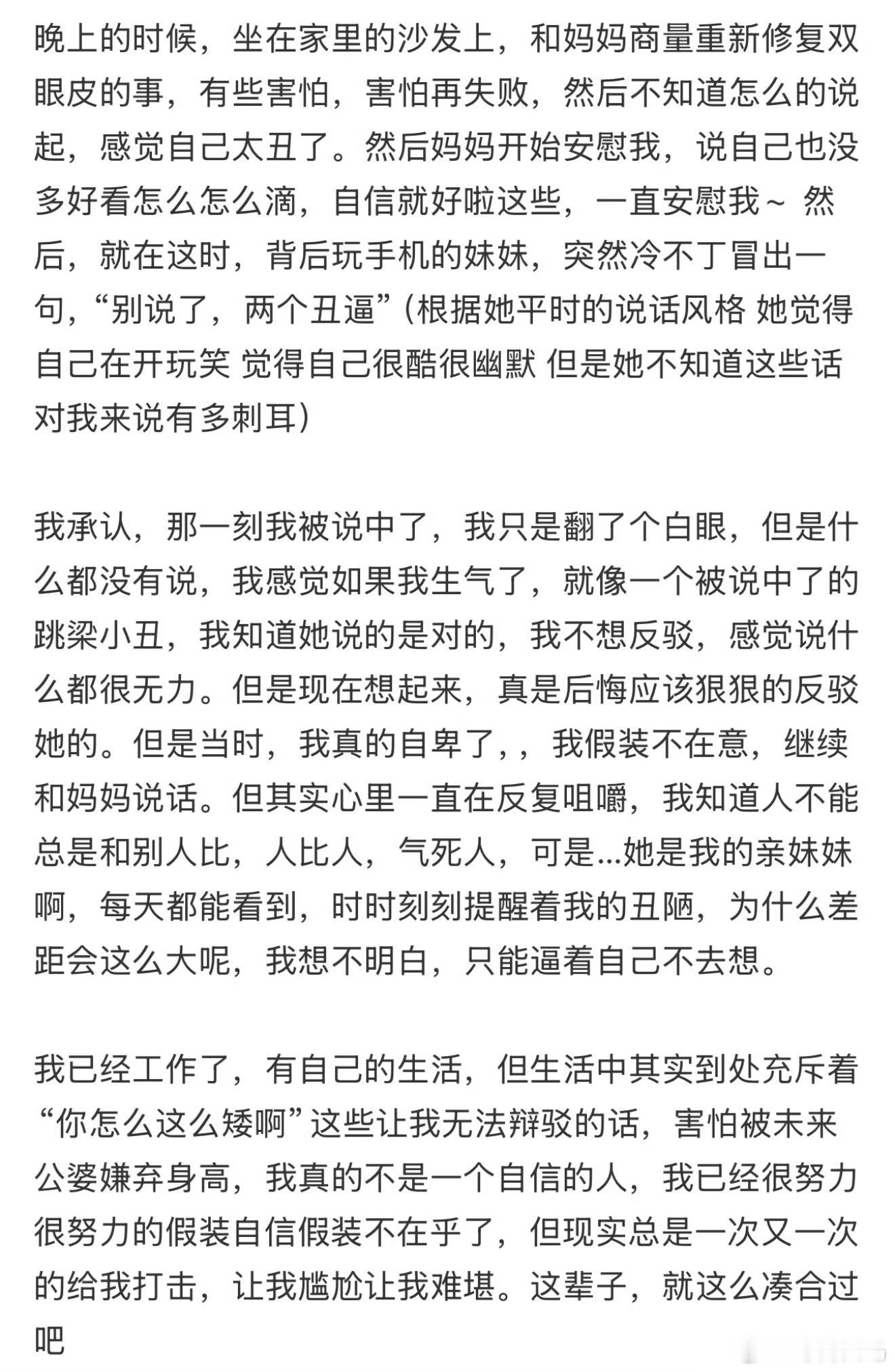 亲妹妹比我长的好看很多应该怎么平衡心理
