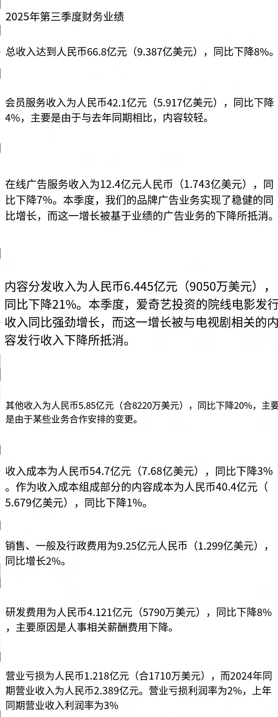 爱奇艺第三季度播了那些剧啊?财报出来了只能看到满屏的“亏损”和“同比下降”