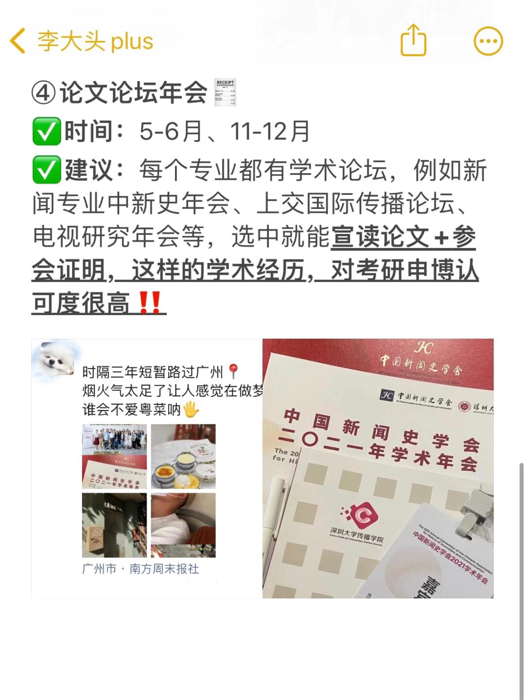 🔻建议:各专业都有学术论坛,例如新闻专业中新史年会、国际传播论坛、电视研究年会等,宣读论文+参会证明,在考研认可度很高