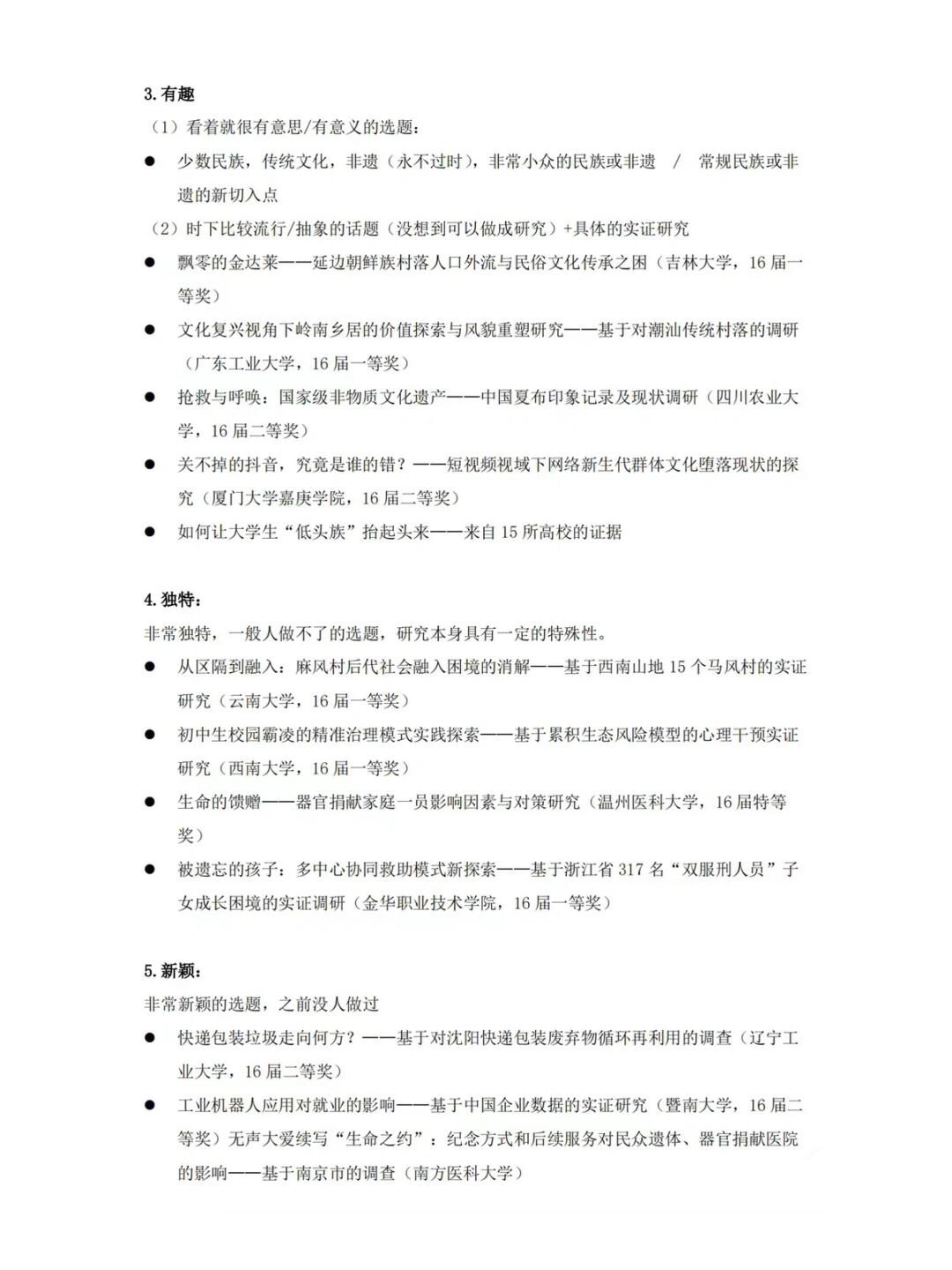 ④独特选题:非常独特,本身具有特殊性
