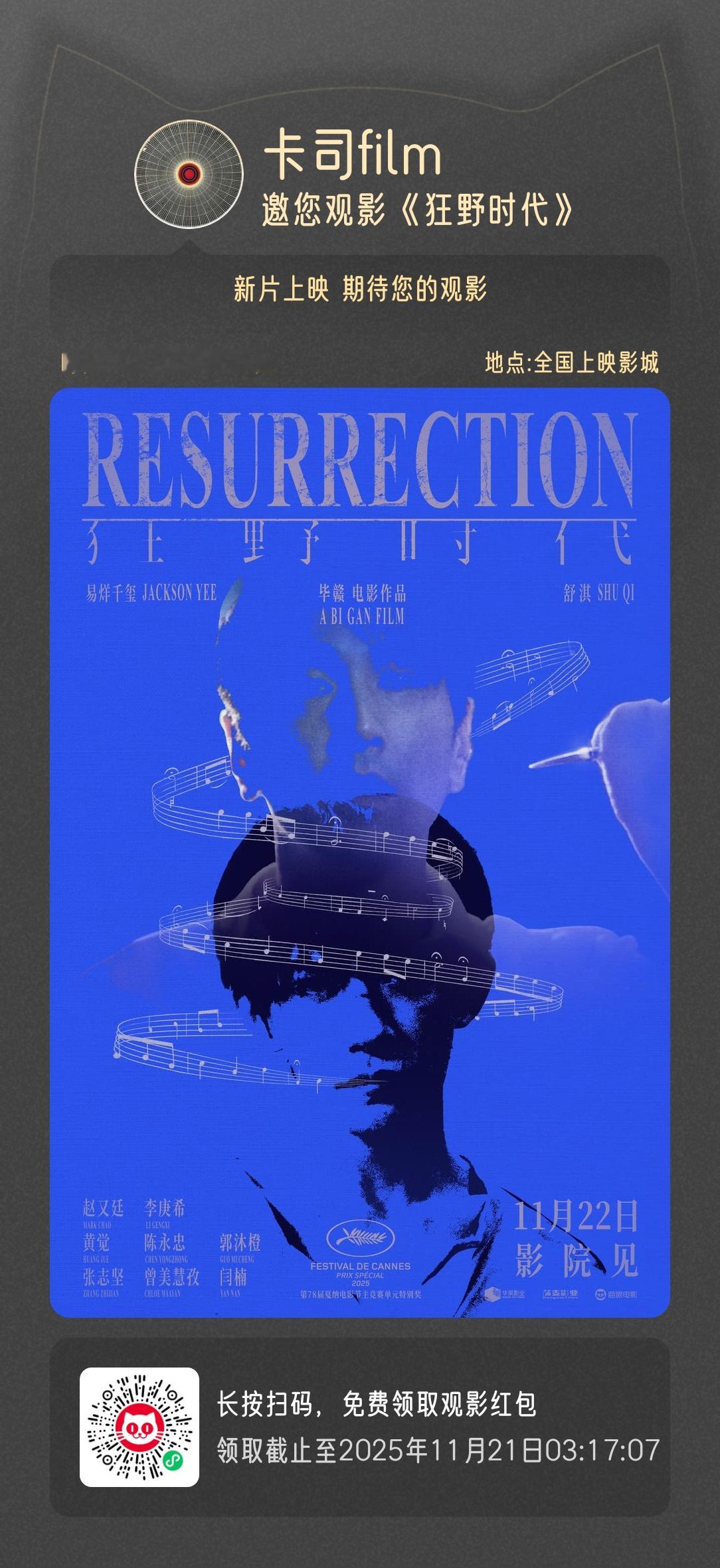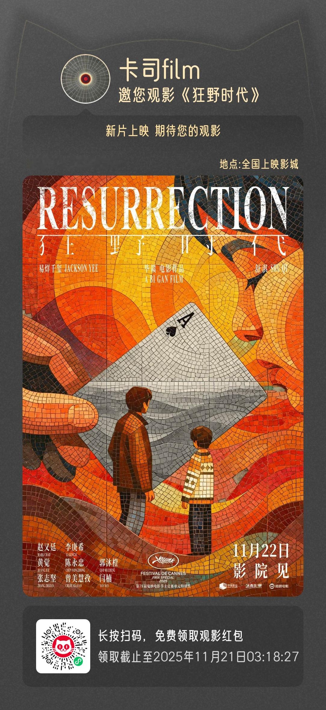 半夜人少,请大家看11月22日上映的电影《狂野时代》,大家辛苦了
