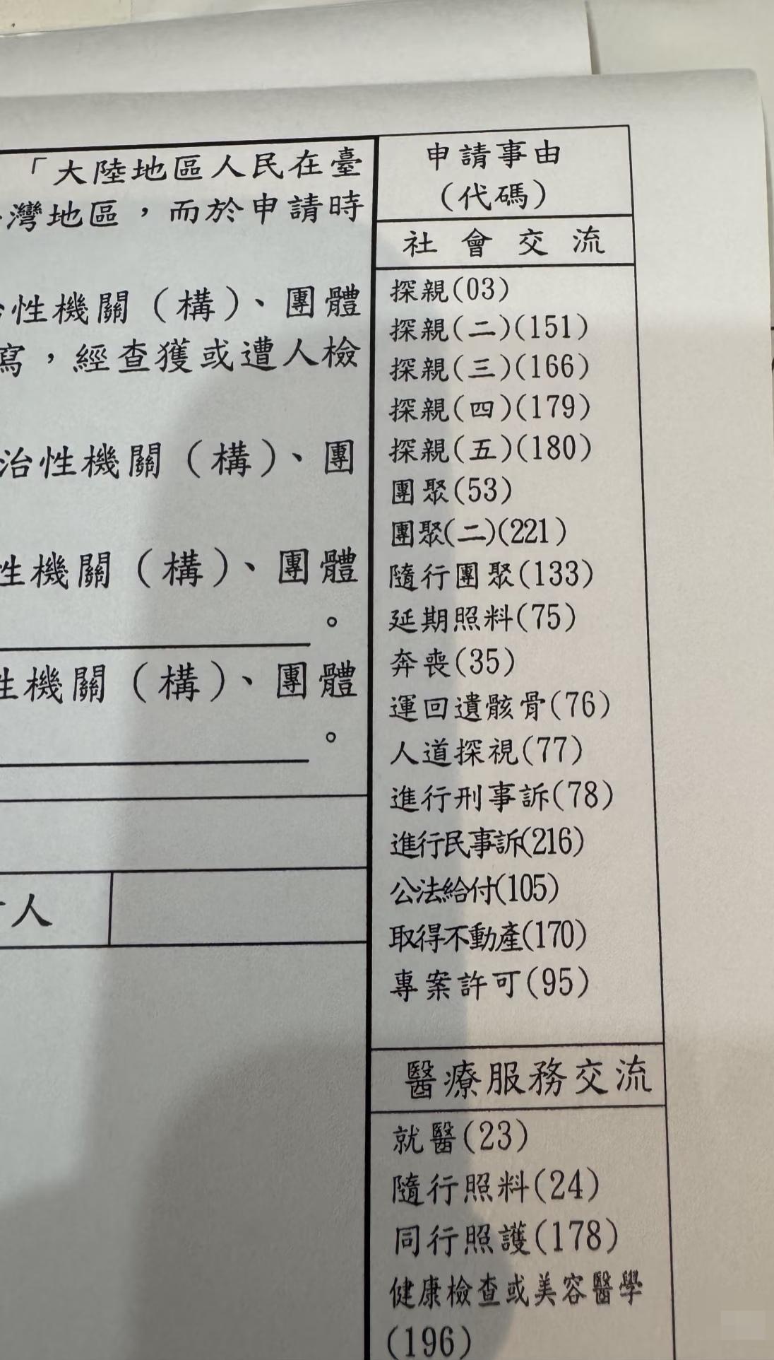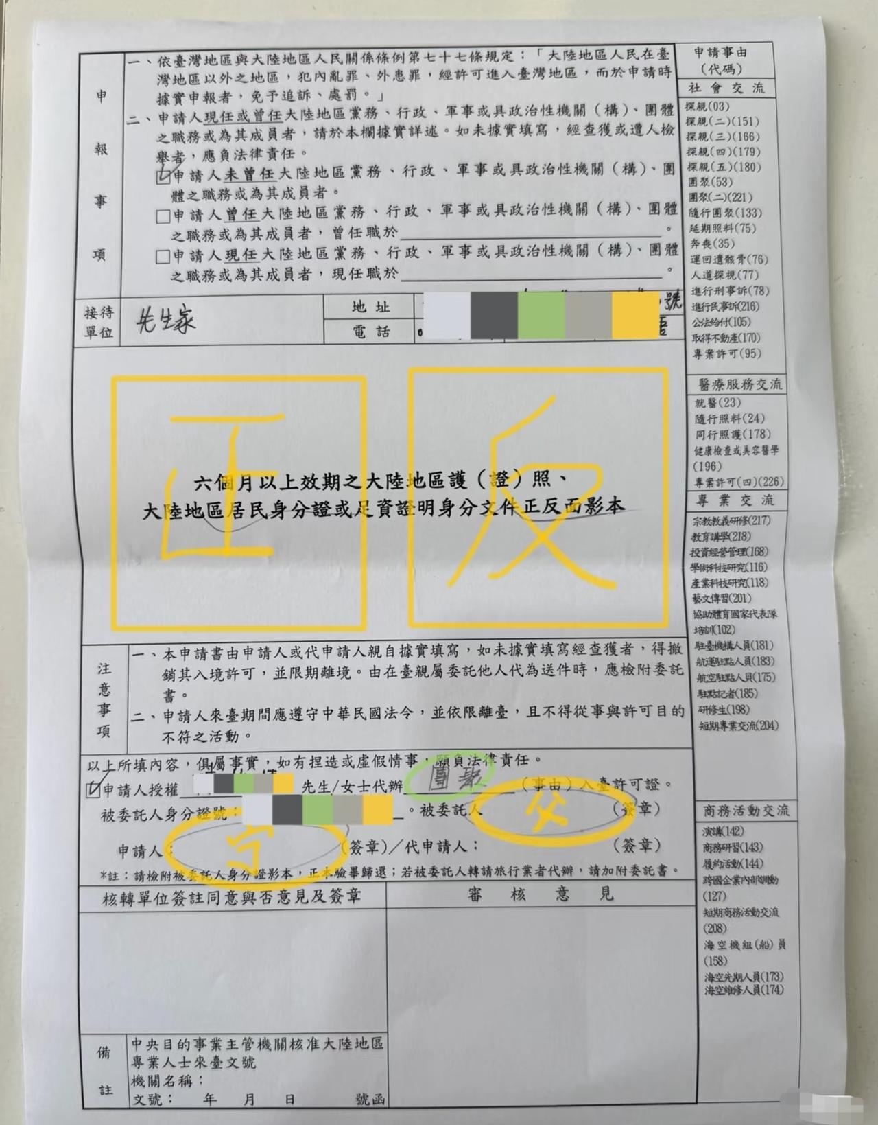 大陆人民入出台湾省申请书。真麻烦,统一后就不会有这么繁文缛节了!
