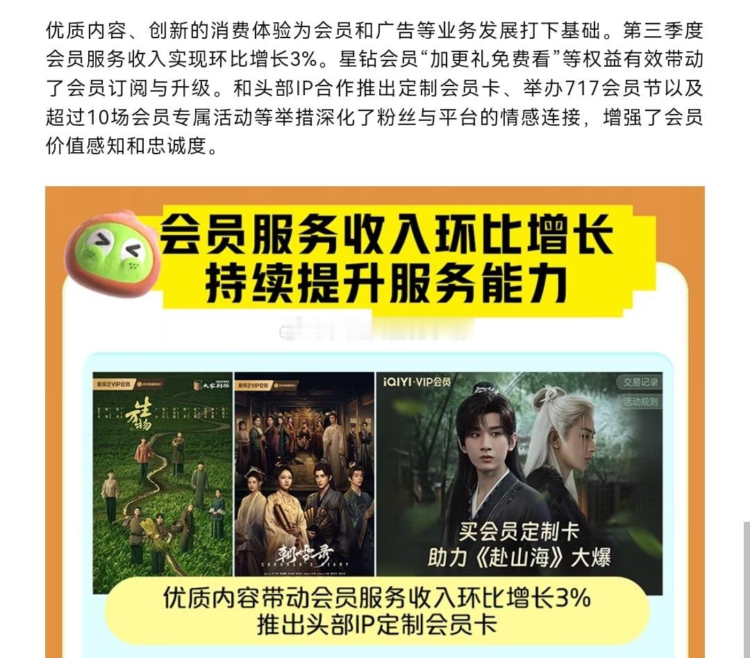 成毅赴山海授权合作商家创爱奇艺平台纪录!赴山海撑起爱奇艺Q3财报所有能赚钱的版块!