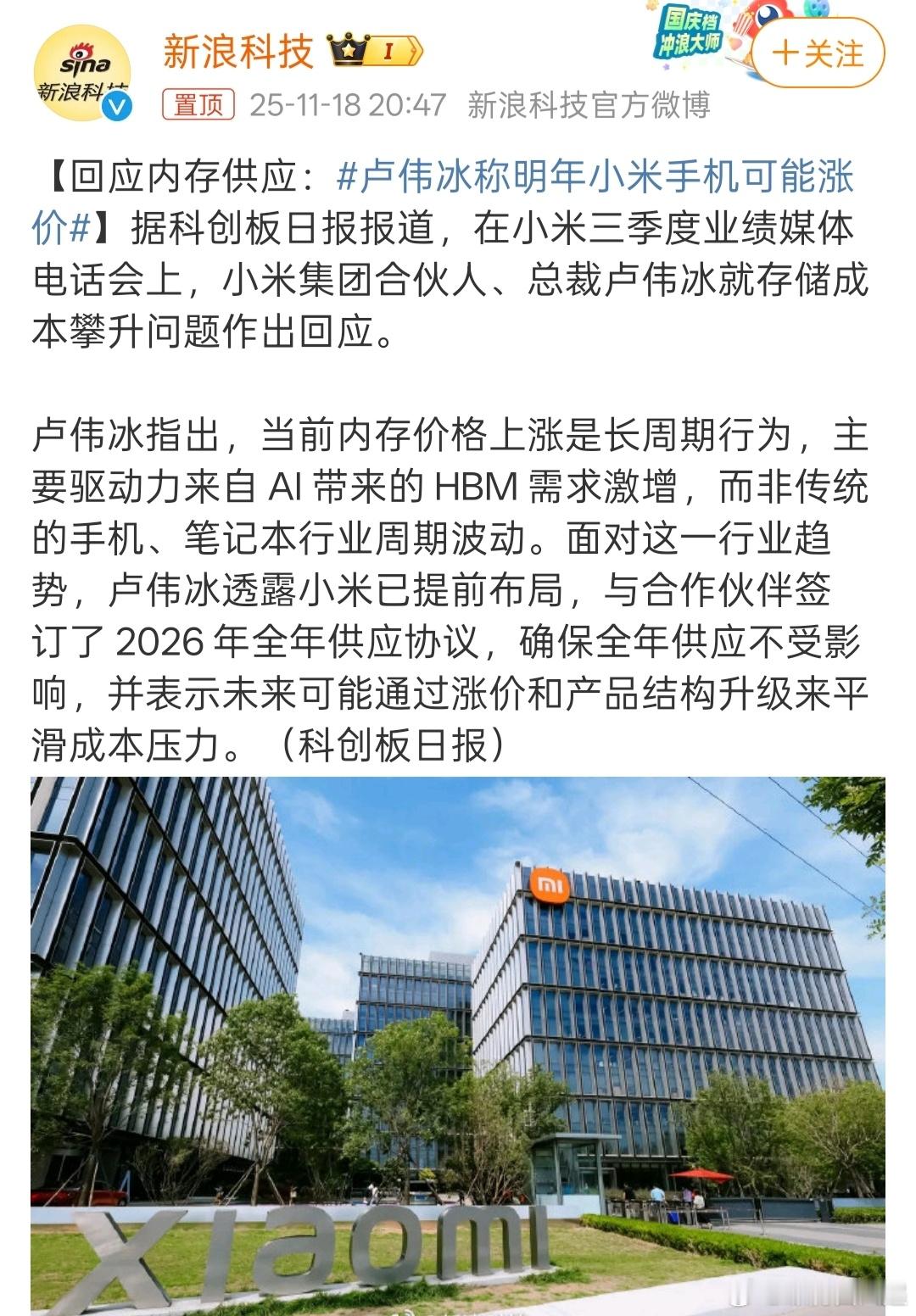 内存价格上涨已经开始体现了,也不会只有小米上涨📈,各家应该都会涨价,且买且珍惜