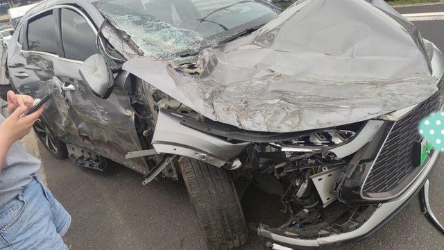 宋高速堵车被追尾顶到前车一个气囊没爆 4儿子店说没碰到感应点。脸已经撞到了方向盘