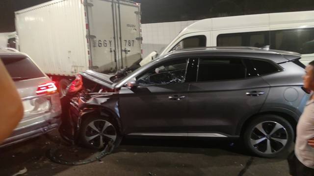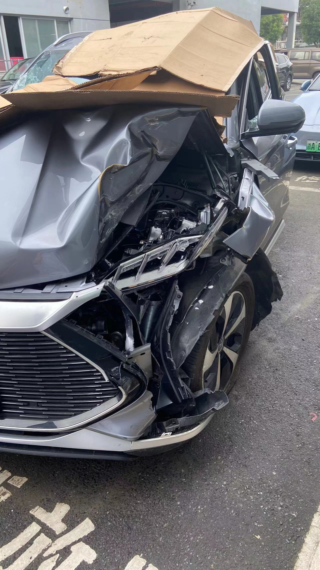 宋高速堵车被追尾顶到前车一个气囊没爆 4儿子店说没碰到感应点。脸已经撞到了方向盘受伤。我个人认为感应点布局不合理。存在安全隐患。 受伤程度: 主驾:脸磕到方向盘 鼻梁出血,鼻内少量出血(万幸当天没有带框式眼镜),手臂淤青。 副驾:四肢擦伤,手掌被玻璃划伤。颈椎不适。(好在A柱只是弯曲,没有被完全摧毁) 主副驾驶都绑了安全带。 撞击过程: 详细过程是高速隧道内已经有一个车祸,发生堵车。我减速到三四码最右,停在前方拥堵车辆四五米处。还没停稳,车突然碰撞报警,然后一声巨响,被追尾了,我们车子被顶着往左前方推几米,撞到前方两辆车(一辆大众 ,一辆大货车)被我撞到的大货车司机明确表示腰痛,冲击力很大。我的左前轮直接爆掉。加上责任车,我们是四车连撞。