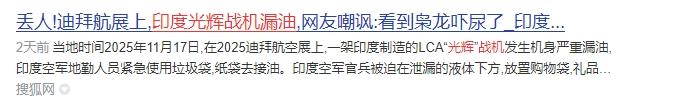 阿联酋迪拜的航展发生一件令人瞠目结舌的事件。印度空军参展的“光辉”战机在静态展示时机身出现了漏油。 一架“光辉”战机停放在展坪上,机腹下方有液体持续渗出,地面上形成了清晰可见的湿痕。 印度方面的地勤人员情急之下,使用了购物袋和礼品袋之类的临时物品去接住这些滴落的液体。 许多评论认为这是一起严重的“漏油”事故,并由此对“光辉”战斗机的制造质量和可靠性提出了尖锐的质疑。 一些观点指出,战斗机漏油是非常危险的故障信号,将一架存在潜在问题的飞机带到国际顶级航展上展示,不仅影响自身形象,也是对潜在客户不负责任的表现。 尤其是当人们看到不远处停放的巴基斯坦“枭龙”战斗机等其他机型状态良好时,这种对比更让印度的处境显得尴尬。 多家印度军事和国防网站发文澄清,指出从飞机上滴落的并非燃油或液压油,而是飞机环境控制系统(ECS)排出的冷凝水。 文章解释说,现代军用和民用飞机为了给座舱增压、调节温度和冷却航电设备,都会从发动机引气,经过处理后会产生冷凝水,并从特定管道排出机外。 在迪拜当地30多度的高温环境下,地勤人员为进行飞行前检查而启动环控系统,产生冷凝水并周期性排出是完全正常的现象,反而证明了系统在正常工作。 即便滴落的是无害的冷凝水,使用购物袋、礼品袋这种非专业的临时物品去处理,也暴露出地勤保障流程的随意和准备不足。 在迪拜航展这样高规格的国际舞台,每一个细节都代表着国家的工业形象和军队的专业素养。 专业的后勤团队本应配备标准的接水/接油工具和作业规范,而这种“菜市场修三轮车”式的处置方式,无论如何都难以称得上专业,自然会授人以柄。 “光辉”战斗机项目自1983年启动,研发历程长达数十年,充满了波折。 尽管印度方面将其誉为“印度制造”的骄傲,并称其为4.5代战斗机,但其核心部件如发动机、雷达等仍严重依赖进口,国产化率并不高。 这种“万国牌”的集成模式本身就给后勤维护带来了巨大挑战,成本高昂且周期漫长。 从普惠发动机的缺陷导致大量民航客机停飞,到其主力制造企业印度斯坦航空有限公司(HAL)因生产和维护标准问题而备受争议。 当“光辉”战机在国际舞台上出现任何一点瑕疵时,公众的反应并不仅仅是针对这一个孤立事件,而是对整个印度航空工业体系长期表现的一次集中性质疑和不信任投票。 一个国家的国防工业实力,不仅体现在发布会上光彩夺目的参数和飞行表演中惊艳四座的机动,更体现在那些不被人注意的角落里。 大家觉得,这次事件对“光辉”战机的海外推广会产生多大的影响? 信息来源:搜狐网