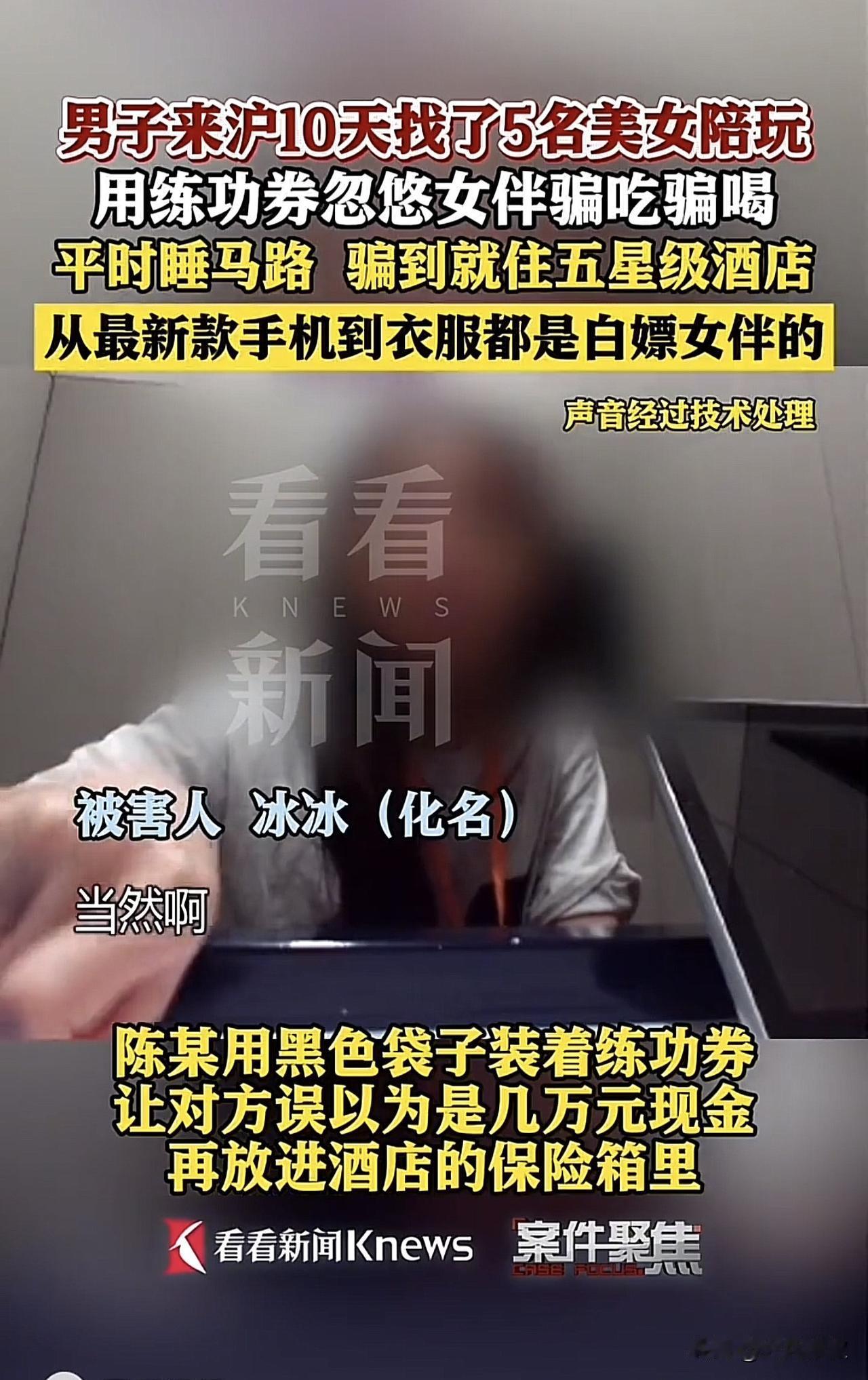 上海,一小伙十天内连续约了5名女子约会开房,匪夷所思的是,小伙竟然一分钱都没花,