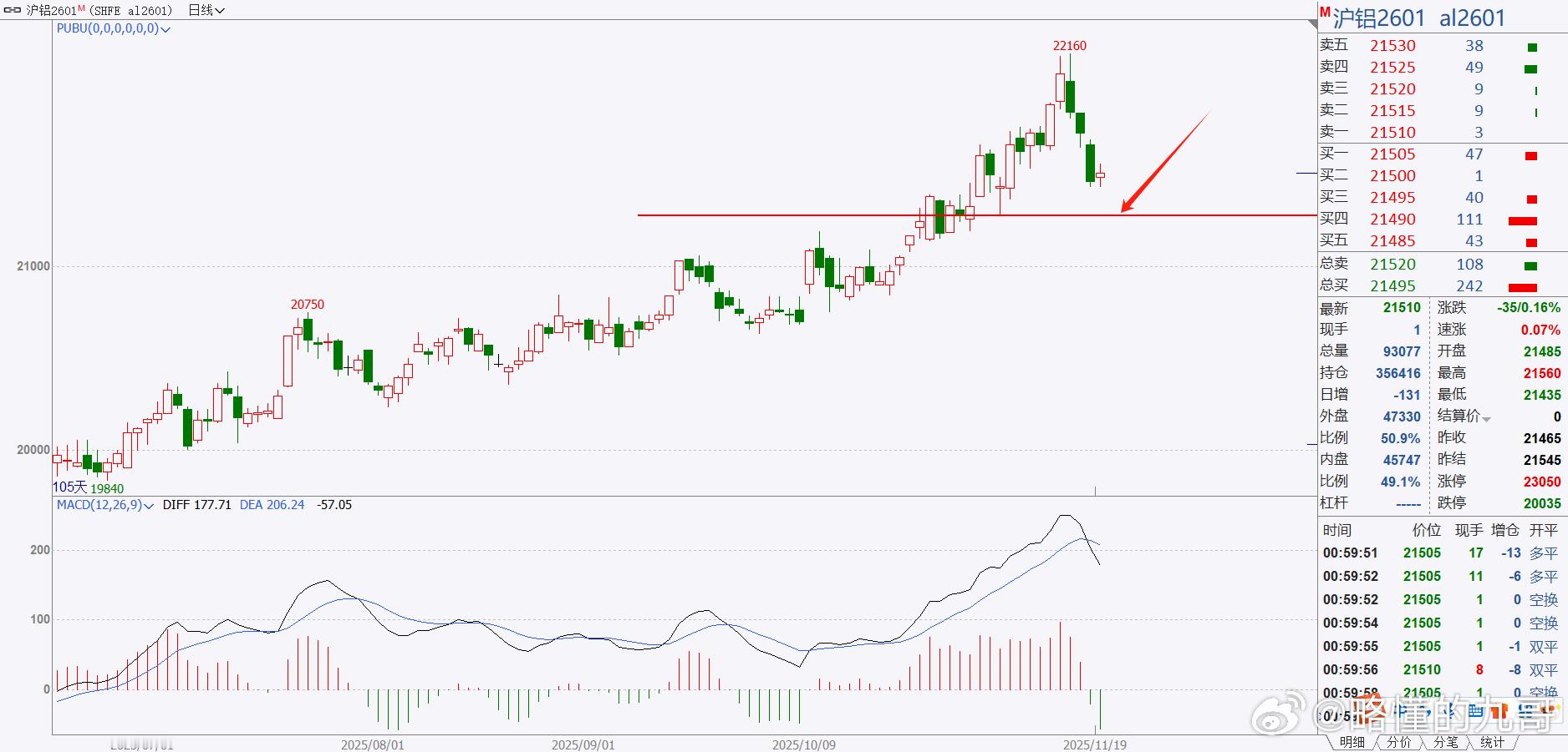 沪铝图画好了,等待这根线上收大阴线了!收到回复!