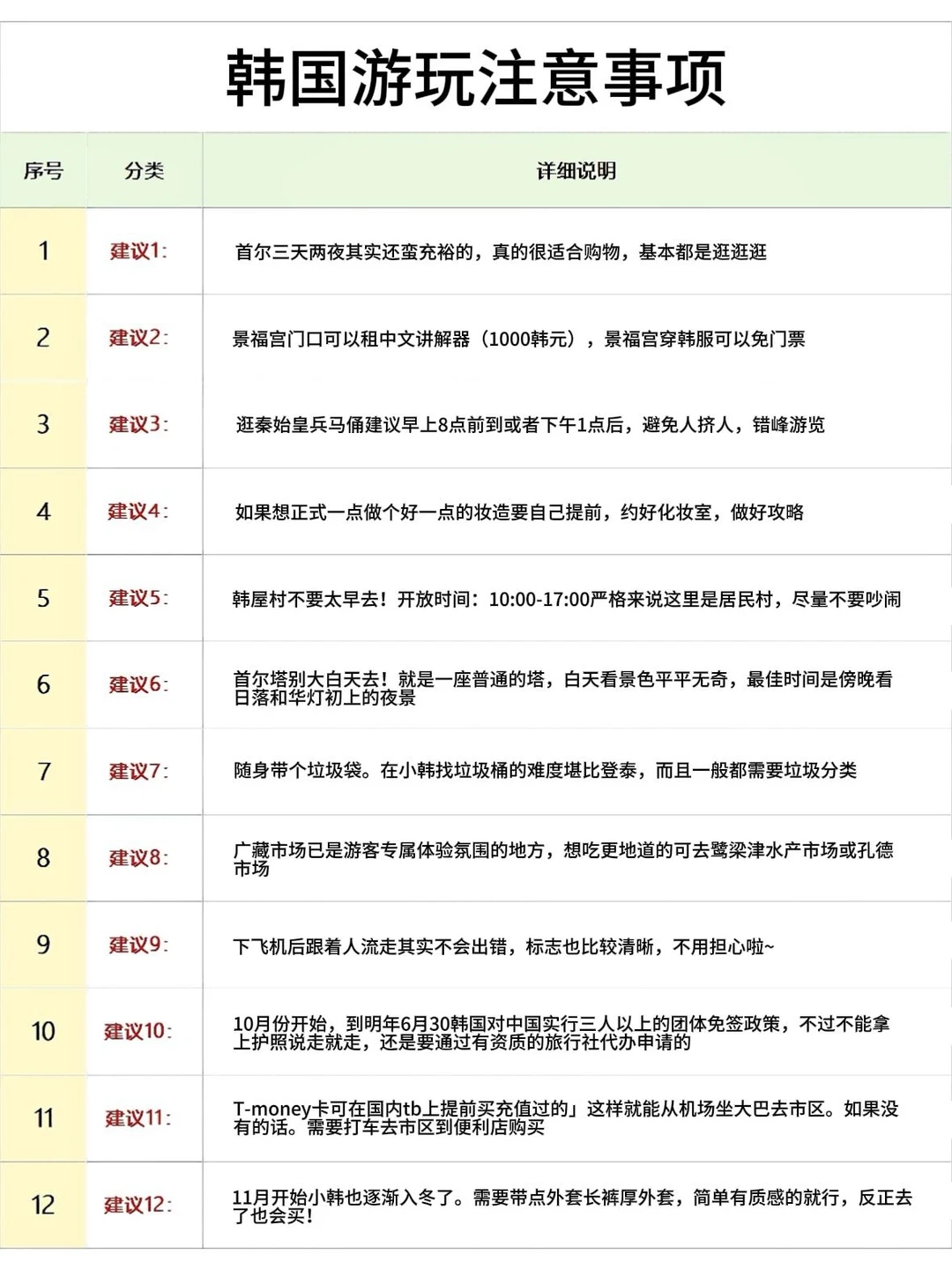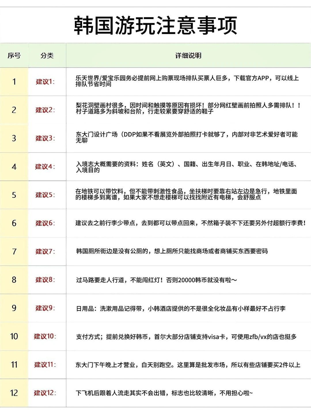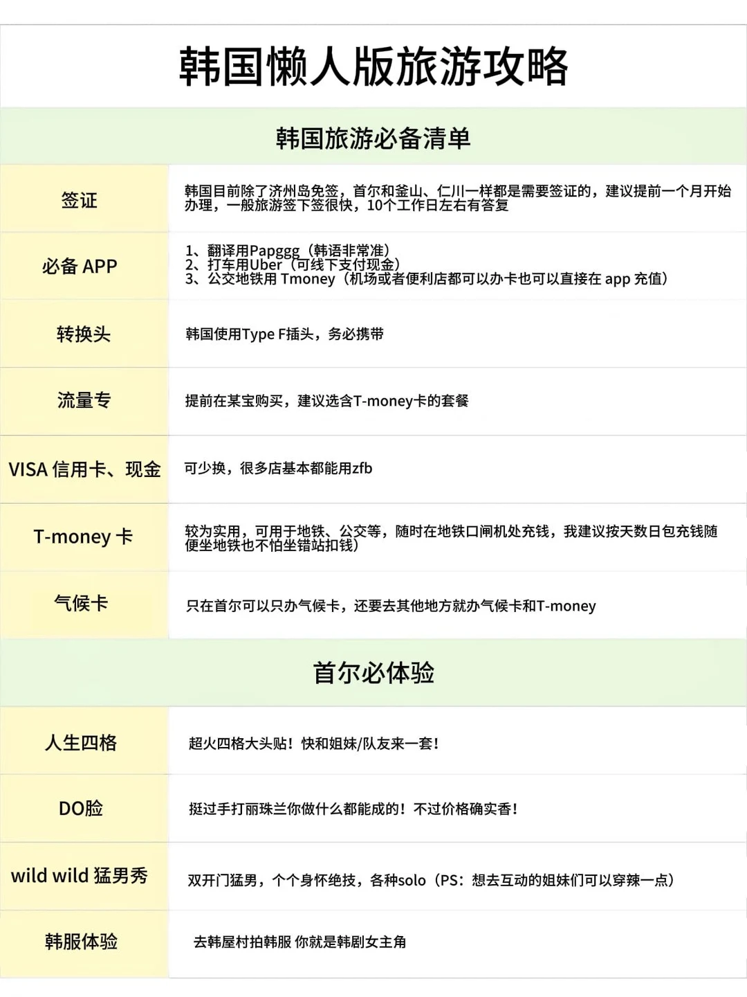 熬夜整理的韩国懒人版路线🗺️直接抄作业