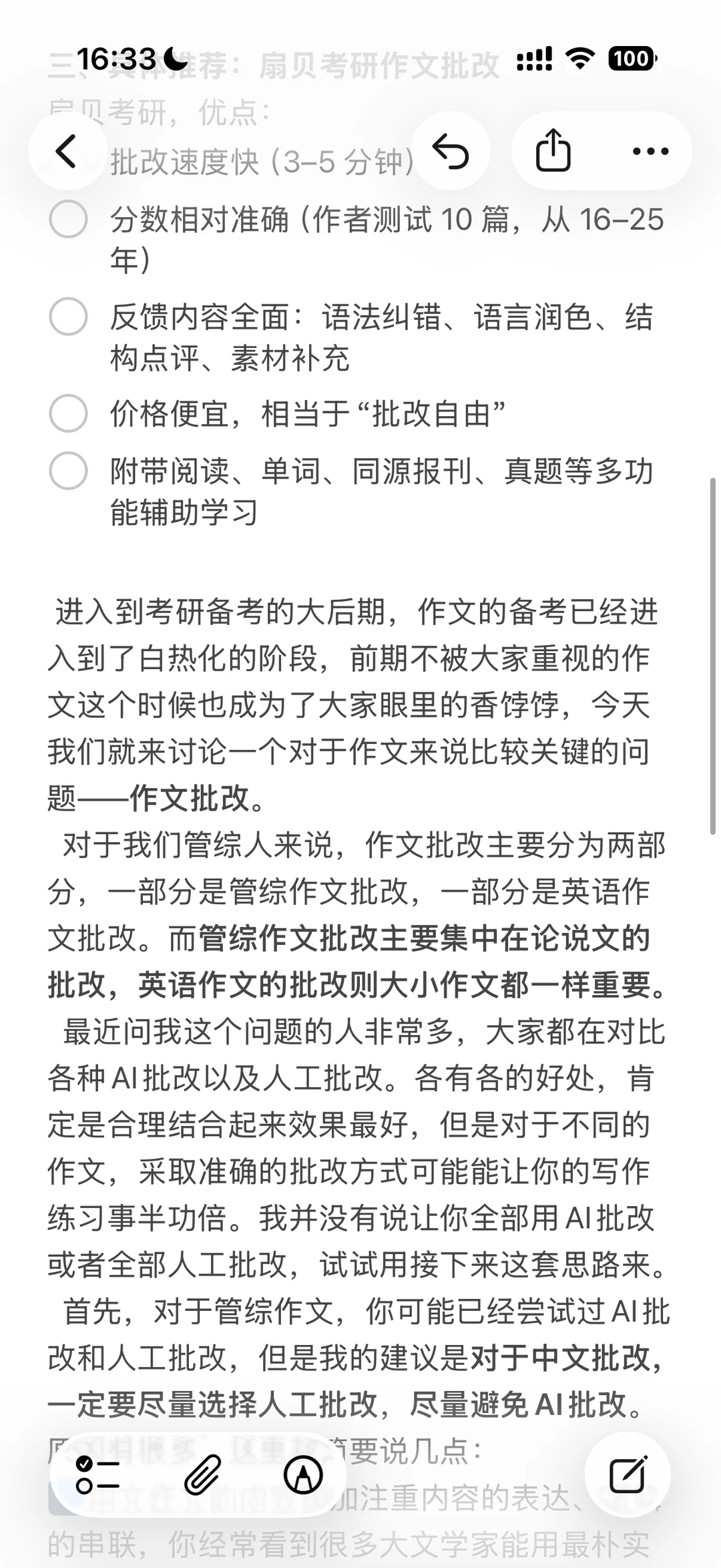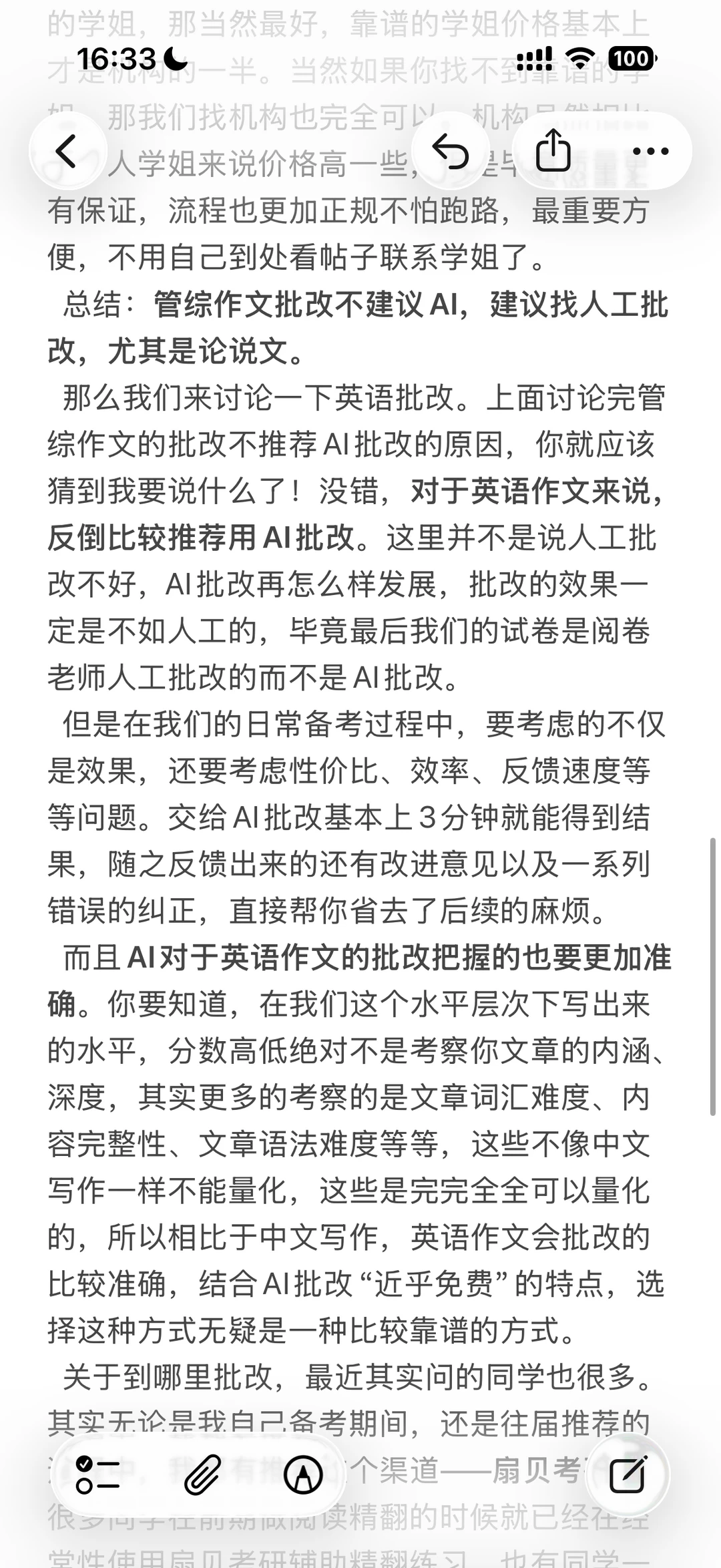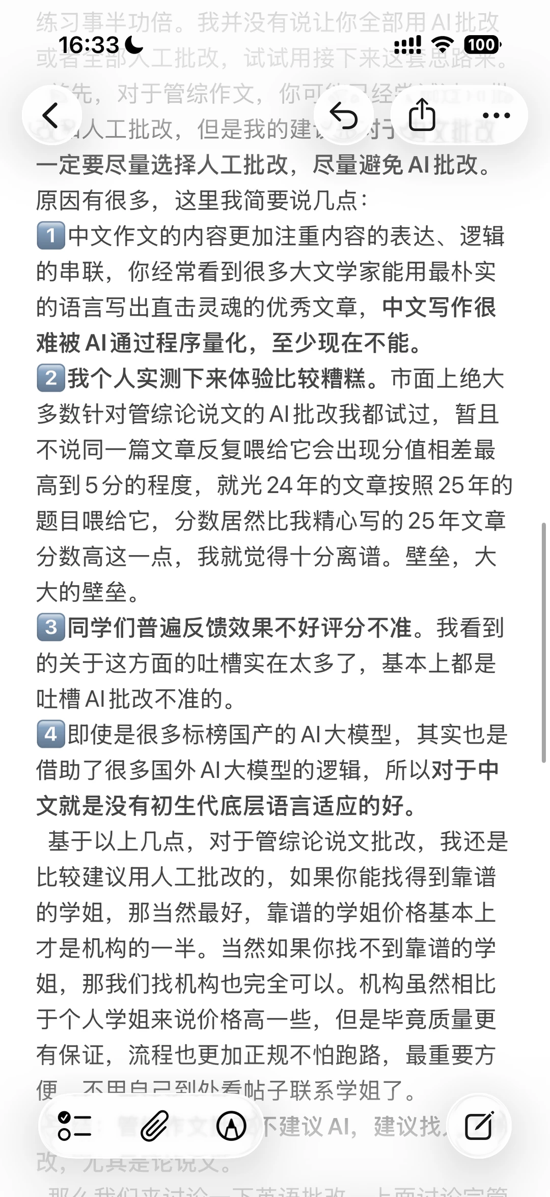 一、管综作文批改:强烈不推荐 AI,优先人工,原因有: