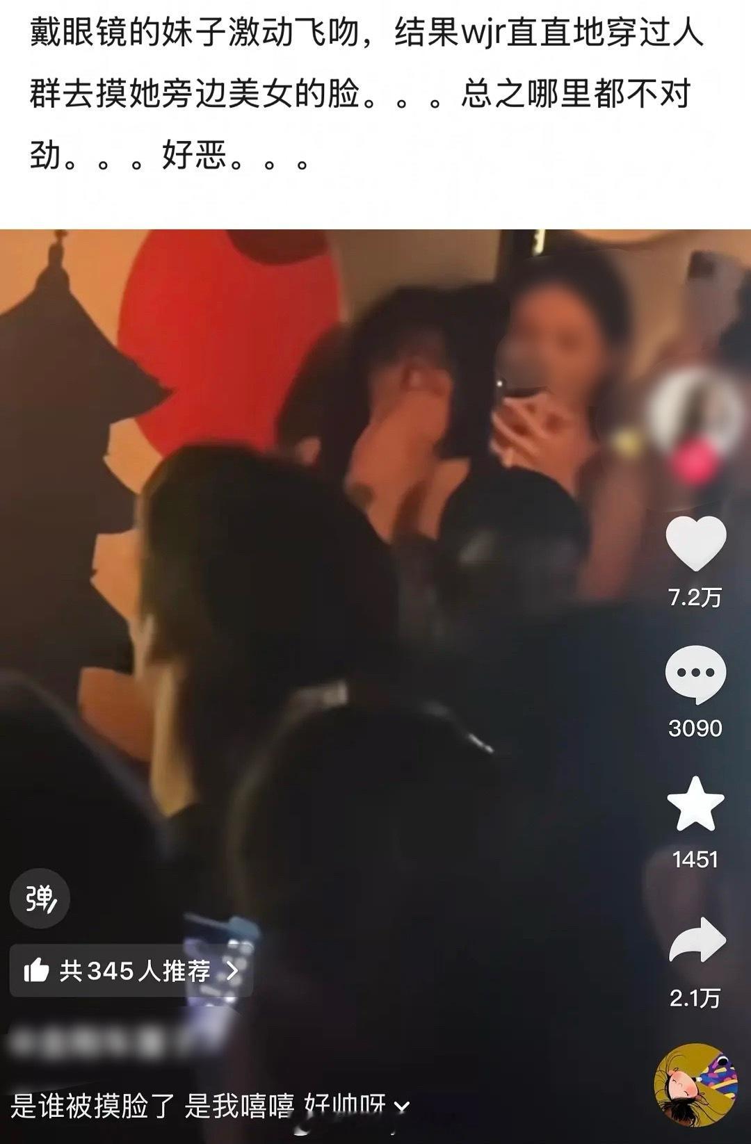 有粉丝跟王嘉尔打招呼,王嘉尔看到后手直接伸向了旁边的美女,就这么摸了她的脸……