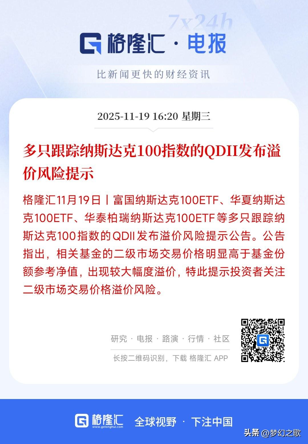 一边提示风险,一边又是暂停申购,这是彻底断了纳斯达克的后路 对于国内股民基民来说,想买美股几乎是不可能的,只能通过基民来参与美股当中,一般散户也是这样参与的,毕竟美股已经走了10年的牛市,更容易获得利益。 但最近纳斯达克暴跌后,就出现了科技股回归估值的声音,现在直接表面纳斯达克100指数已经严重溢价,很可能会出现大幅回撤。国内基金也已经停止申购。直接断了国内散户对纳斯达克的投资,这是一笔不小的钱,纳斯达克指数必然会受到影响。 事实上,国外的大机构已经预测了纳斯达克指数这波回撤将达到10%-15%,目前才到5.45%,还远远不够。