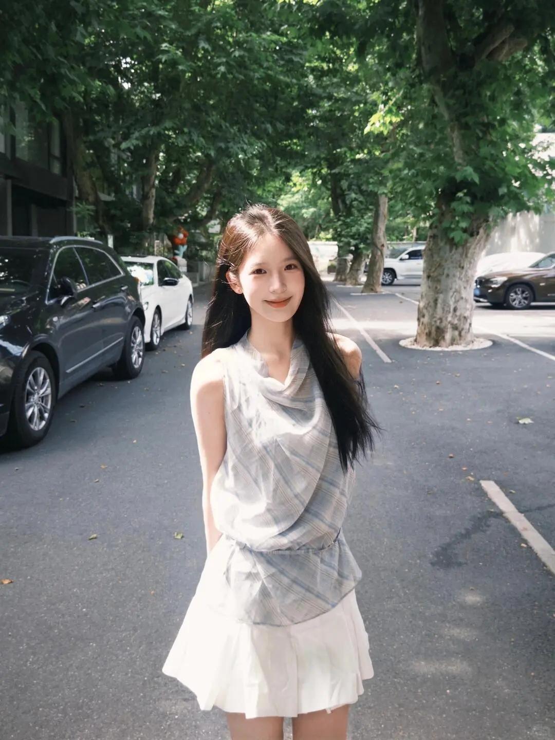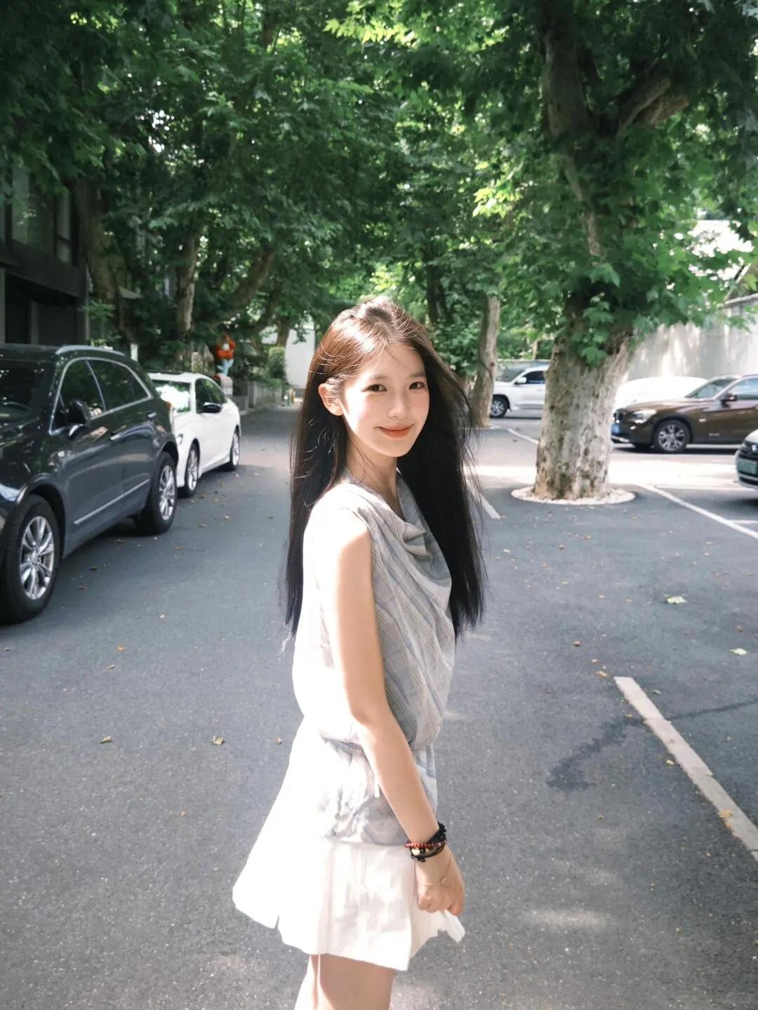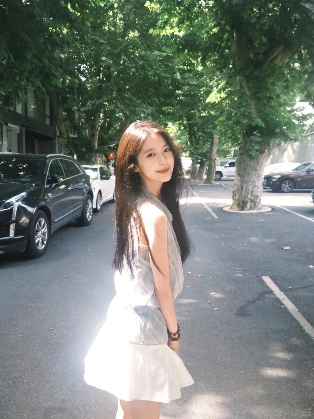 老巷的青砖沾着湿意,木桌木椅懒在檐下。穿一身鹅黄吊带,别朵小菊在发梢,风里都是慢