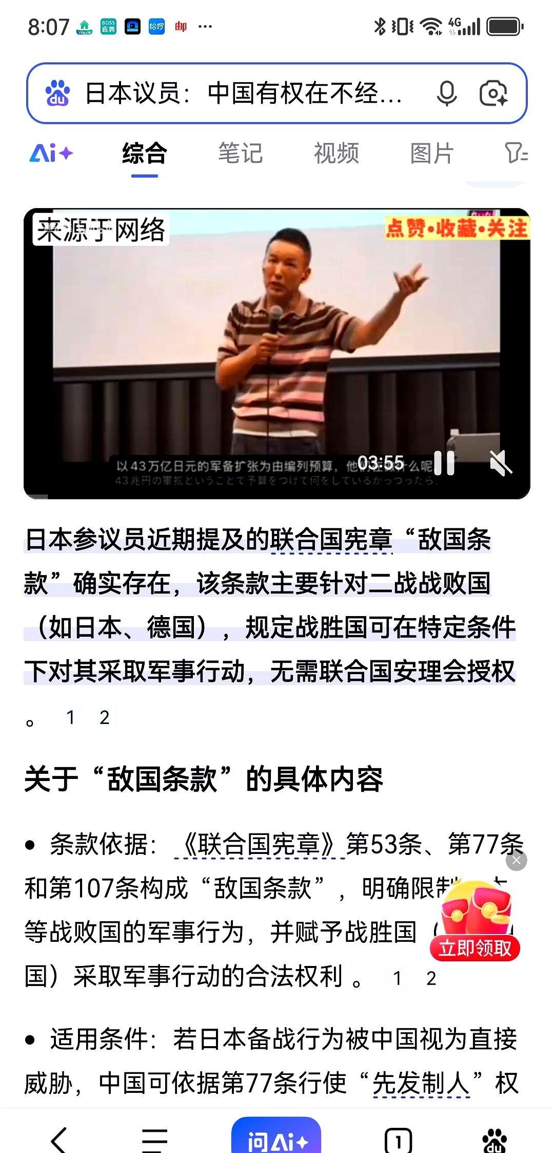 日本议员:中国有权在不经过联合国授权的情况下打击日本,这是联合国成立时授予的权利,一旦日本备战让中国感受到了威胁,中国有权先发制人,所以不要挑衅中国。 在国际事务中,国家间的立场悄然变化时常引发广泛关注。 近日一位日本议员的发言引起了舆论的热烈讨论,这位议员直言中国拥有在特殊情况下采取行动的权利,甚至提及不需要联合国授权直接对日本进行打击的可能性,令人不禁思考这样的言论是否真实合理? 这是一次单纯的话题炒作,还是对地区局势的深刻担忧? 随着新闻迅速传播,各方对于这一言论的解读可谓是众说纷纭。 从这位日本议员的言语内容来看,其核心观点似乎在于强调中国在面对所谓威胁时能够采取主动行动,这种说法引发了全球对现有国际秩序是否稳定的新一轮讨论。 无论从历史角度还是现实国际关系中的权力博弈来看,这种表态无疑赋予了相关议题更大的争议性。 理解日本议员提出的中国拥有特别权利的背景或许需要回到联合国成立之初的历史。 根据联合国的成立原则和《联合国宪章》,确保全球和平与安全固然重要,而允许个别国家在自保的情况下或在威胁显著的场景下采取措施也是一种现实考量。 这种规定在某些极端情况下能够成为国家行为的法律依据,但要将这种权利和主权行为外延至主动打击,其解读可能存在更大的学术争议,也需要基于具体情境分析。 值得思考的是,这是否意味着日本与中国之间的紧张关系在当前的国际背景下已经走向某种临界点? 显然,这种言论一旦没有经过详细论证,很可能产生透支两国信任的风险,也可能会进一步激化地区局势的敏感性。 尤其是在政治家表态中,提前释放出一种可能让对方产生戒备乃至反制的信号,本身就是复杂国际关系中不应轻率为之的行为。 不过,也有一些分析认为,这名议员的言辞意在制造一种更谨慎的氛围,提醒国内在处理对华关系时保持低调。 直观上,这样的态度看似是表达一种对和平的关注,但其话语中的矛盾也反映了当下日本内部对于中国崛起应对策略的分歧。 中国作为东亚地区的主要力量之一,如何平衡其发展与周边国家的关系始终是国际政坛的一大命题,而日本作为邻国,其安全关切更不容忽视。 那么联合国在这之中扮演着什么样的角色? 依历史经验,联合国对国际和平与安全的介入通常基于一致意见,但现实并非总是如此。 当国家间的矛盾愈加复杂时,单方行动的“合法性”往往成为争议中心。 无论是大国之间的摩擦,还是涉及主权问题的小国冲突,如何在法律框架内保障国际秩序成为各国绕不开的话题。 此事事件背后还有一个隐藏的可能性,即这种言论可能是试图影响国内外舆论和政策趋势。 中国与日本的历史纠葛深远,文化、经济和地缘因素相互交织,任何微小的风吹草动都能掀起舆论的波澜。 基于此,人们需要更清晰的框架去理解,言论的目的是唤醒警觉还是促进沟通? 又或者是制造压力还是推动真正的外交对话? 这些都需要冷静地对待,避免进入偏激的方向。 在这样一个国际环境日益复杂的时代,国家间的关系与沟通更需要耐心与智慧。 话语本身的分量往往超过了表面,议员们的一句话不仅影响国内民意,也可能传递出更复杂的信息给国际社会。 而这正是全球政治格局中,言辞如何被解读的重要挑战。 事情发展到这里,究竟这位日本议员的初衷是什么? 此番表态是否真的触碰了敏感神经,抑或是无心之言的发酵? 有时候,一言既出,带来的不是答案,而是更多的问题与考验。 也许,回归冷静是处理国际事务的不二法门。 你的观点如何? 你觉得这种发言反映了日本议员的真实担忧,还是另有隐情? 欢迎大家在评论区积极分享自己的看法,共同探讨这一颇具争议性的话题。 国际事务不能仅靠表面观察,深入剖析才是找到真相之路。 信源:日本参议员:中国有权在不经过联合国授权的..来自菌武视界-微博-菌武视界