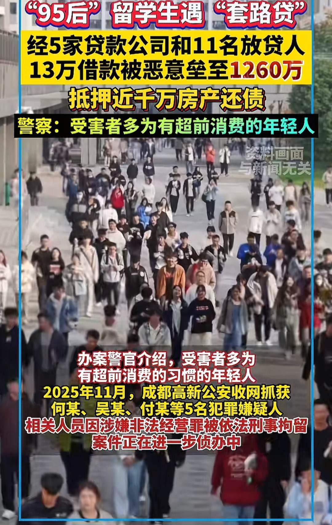 "95后"留学生遇"套路贷",经5家贷款公司和11名放贷人13万借款被恶意垒至1260万,抵押近千万房产还债,警察:受害者多为有超前消费的年轻人