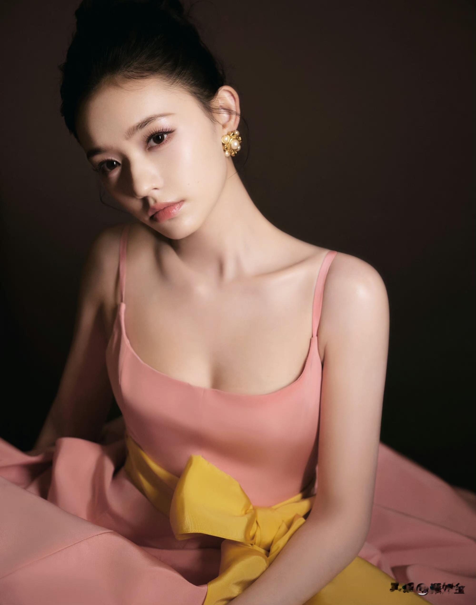 林允粉色低胸裙写真释出,甜欲风狙击心动!