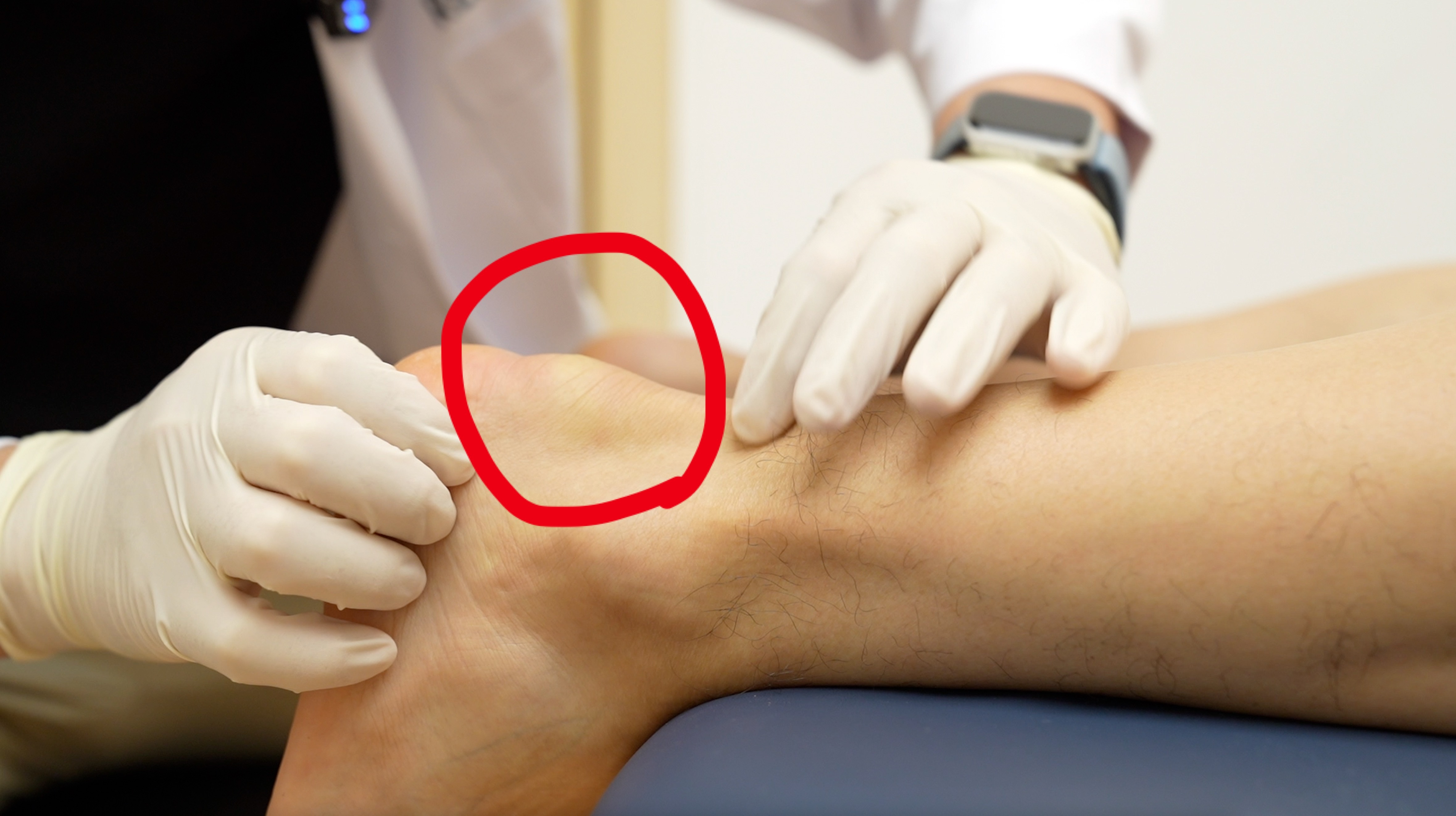 前两天在北京国贸店,评估了一位大哥,爱好跑步,也跑了十几年的马拉松,后来跟腱位置