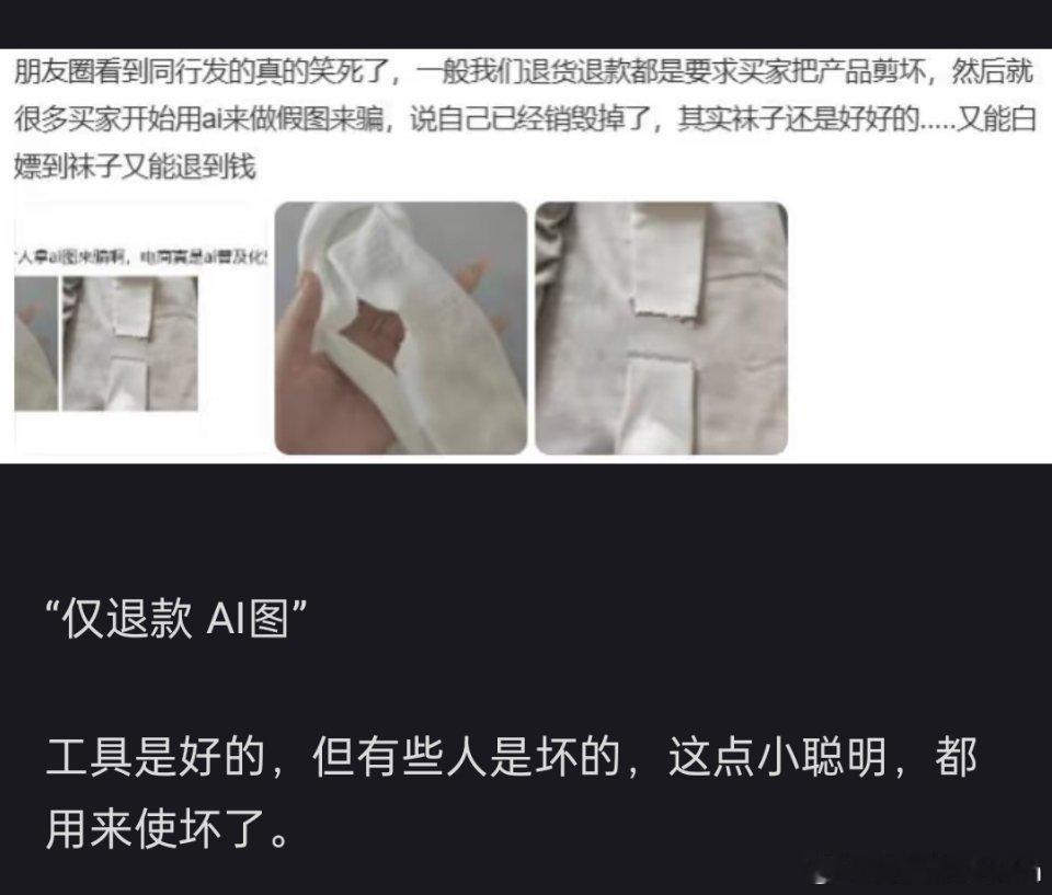 有网友开始用AI假图来申请仅退款了,双11期间,小商家要被薅羊毛哭了....