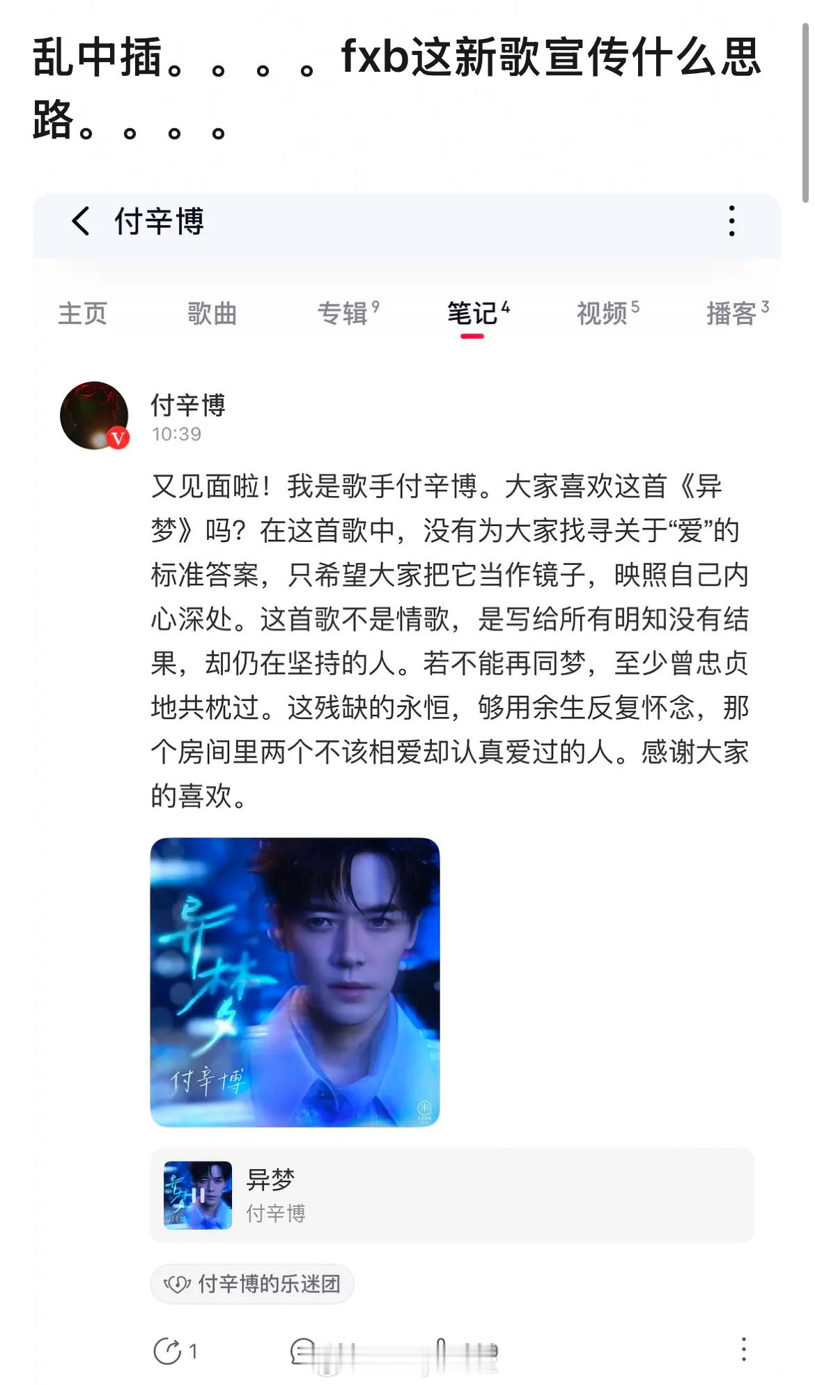付辛博新歌宣传思路:这首歌不是情歌,是写给所有明知没有结果,却仍在坚持的人。若不能再同梦,至少曾忠贞地共枕过。井柏然、张新成上大号说话,夜深人静听这首歌时,是否会心动