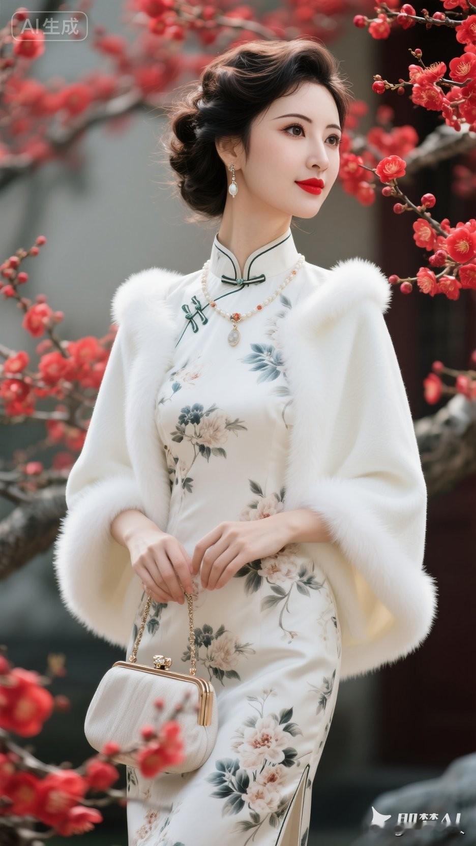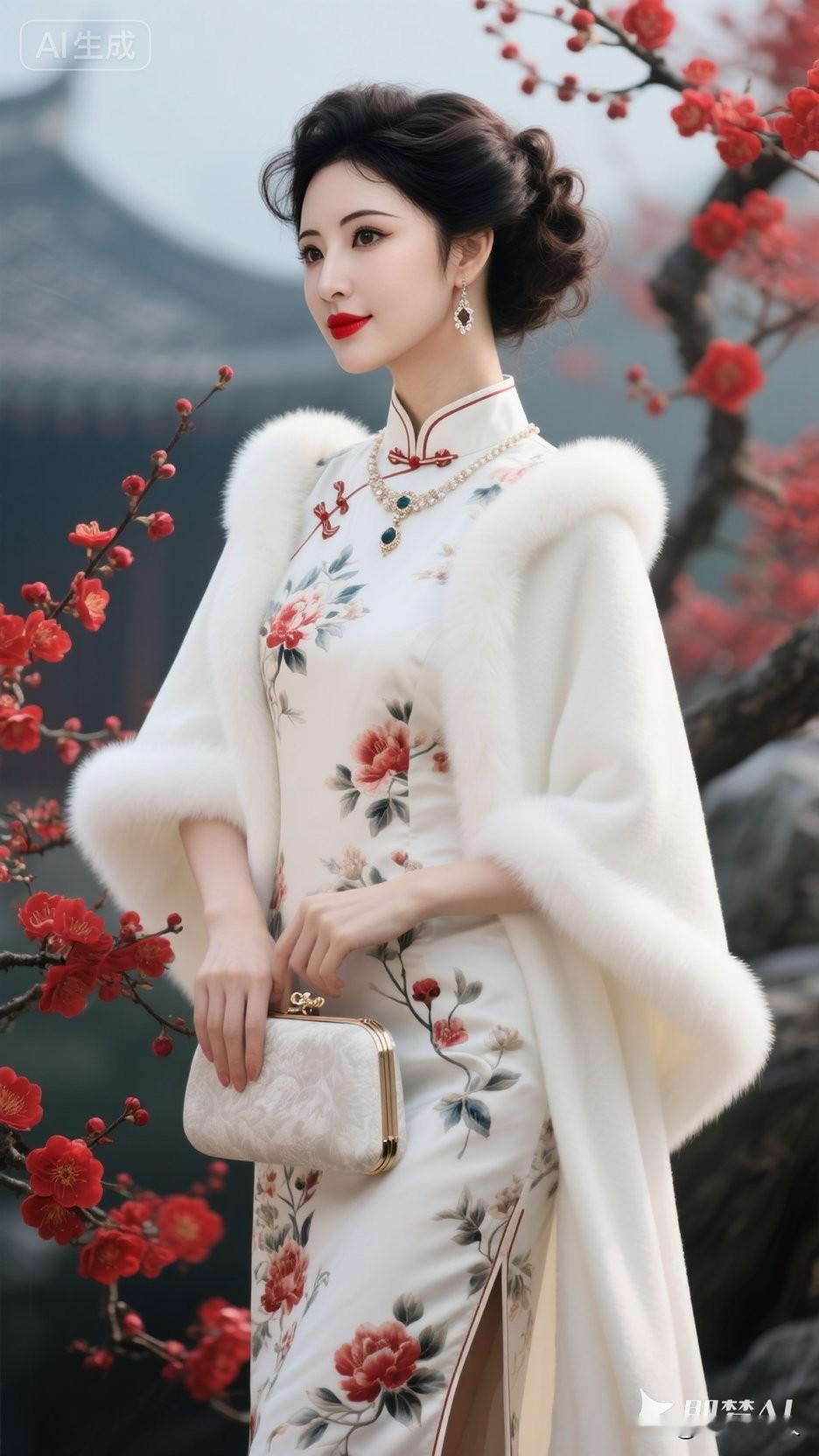 都市夜色下的时尚女郎,白裙飘飘,优雅动人