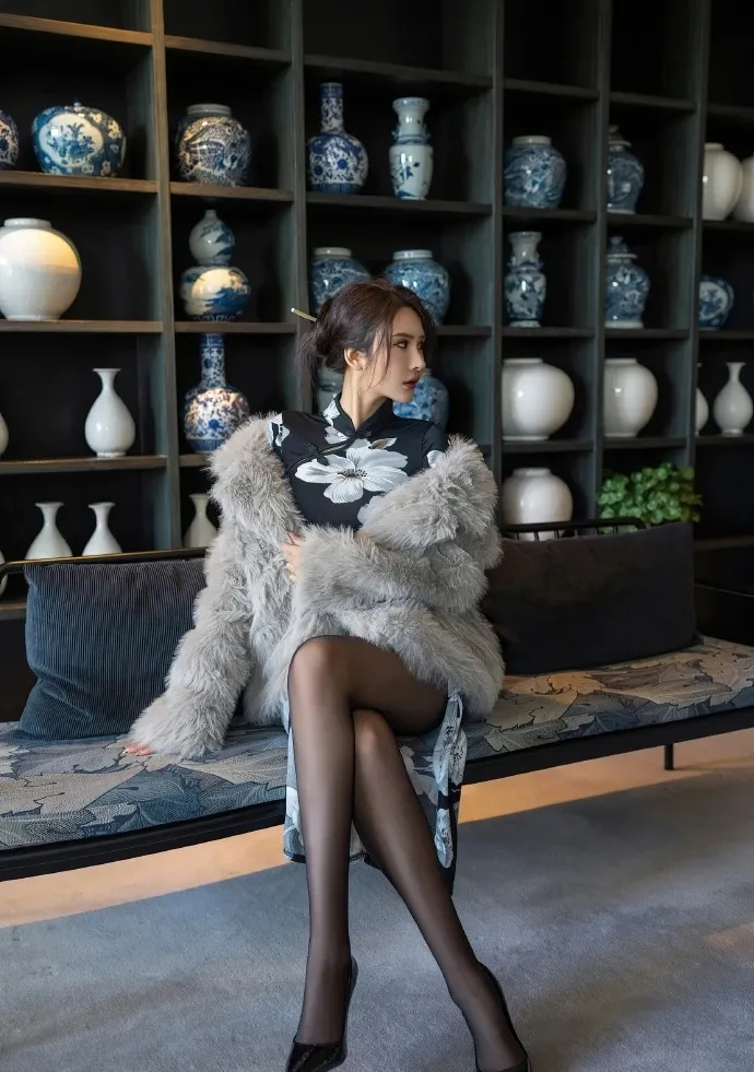 极品美女丨黑丝大长腿,开叉旗袍裙,这谁顶得住啊?