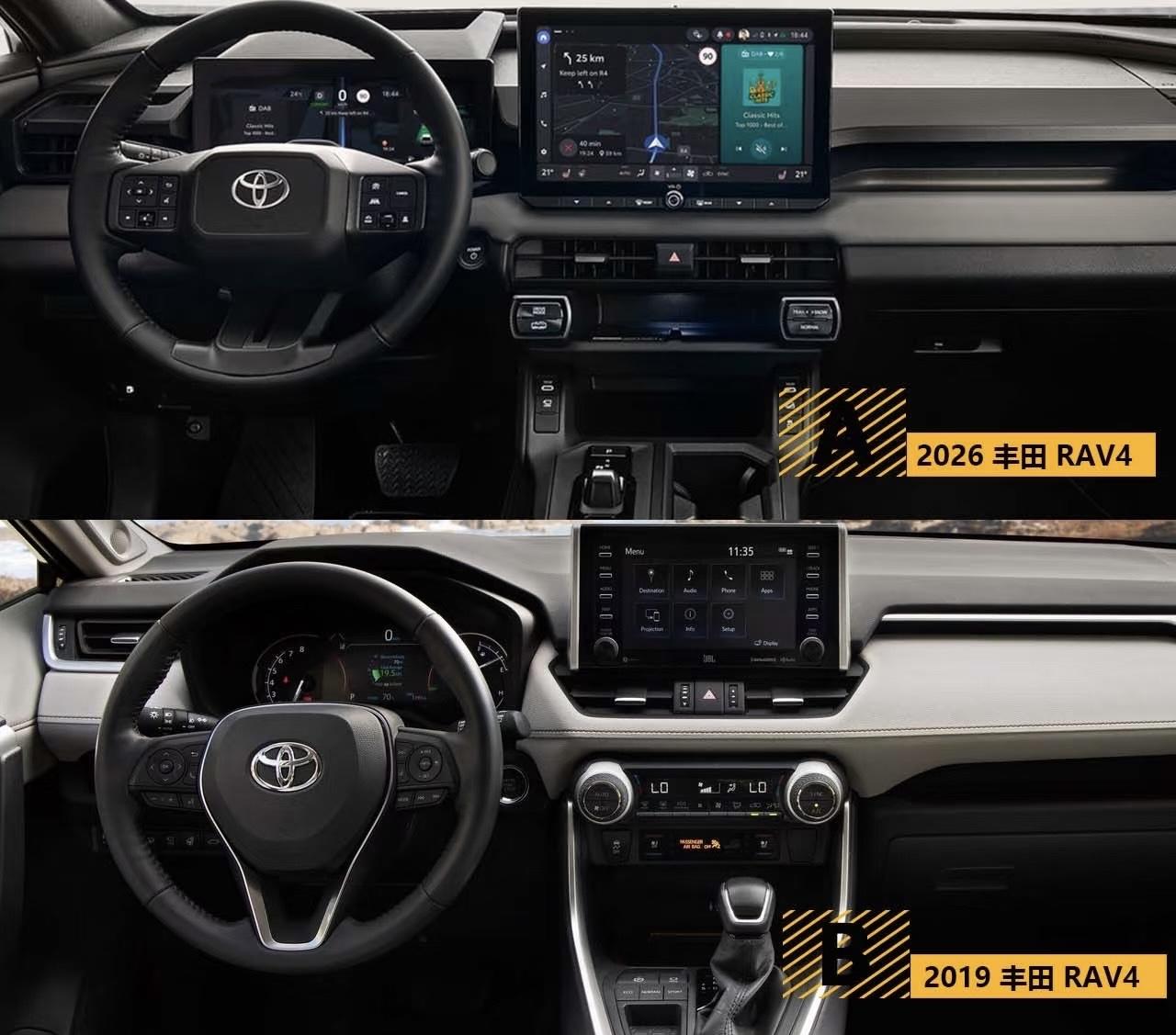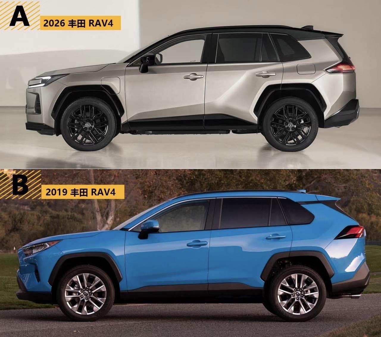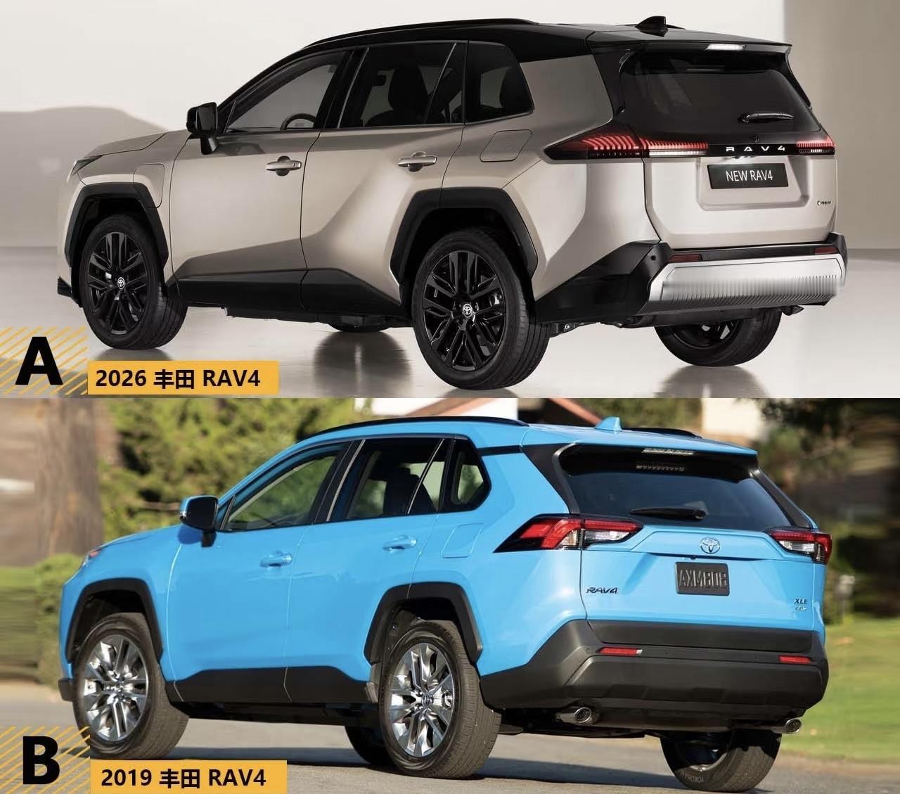 时隔六年 丰田RAV4终于迎来了大换代 上图是新款RAV4 下图是现款RAV4 总体上来说更年轻了 设计语言也更趋近于凯美瑞 这几年的丰田在设计语言上不再保守 也是为了迎合年轻用户