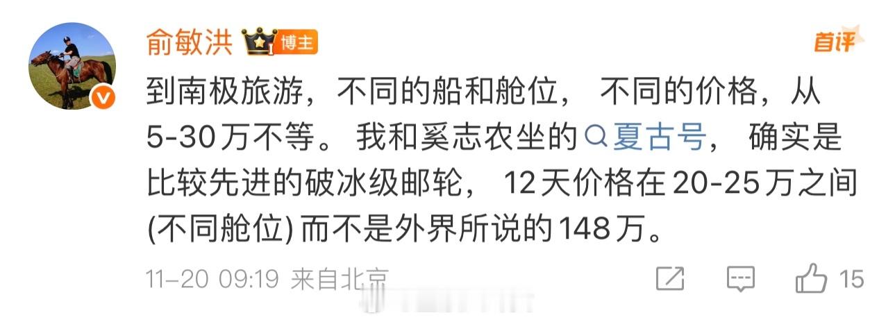 俞敏洪辟谣邮轮游148万,并打算明年冬天选择10个左右基层优秀员工,加上10个优秀会员,由公司支持到南极来看一看