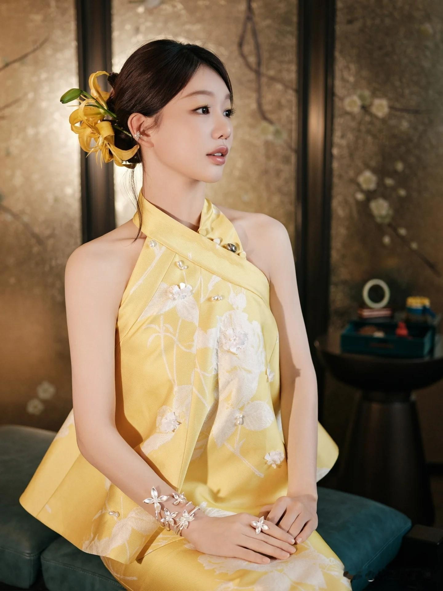 她身着白色旗袍,在奢华厅景中,将旗袍魅力女神的古典与优雅,融于每一处...