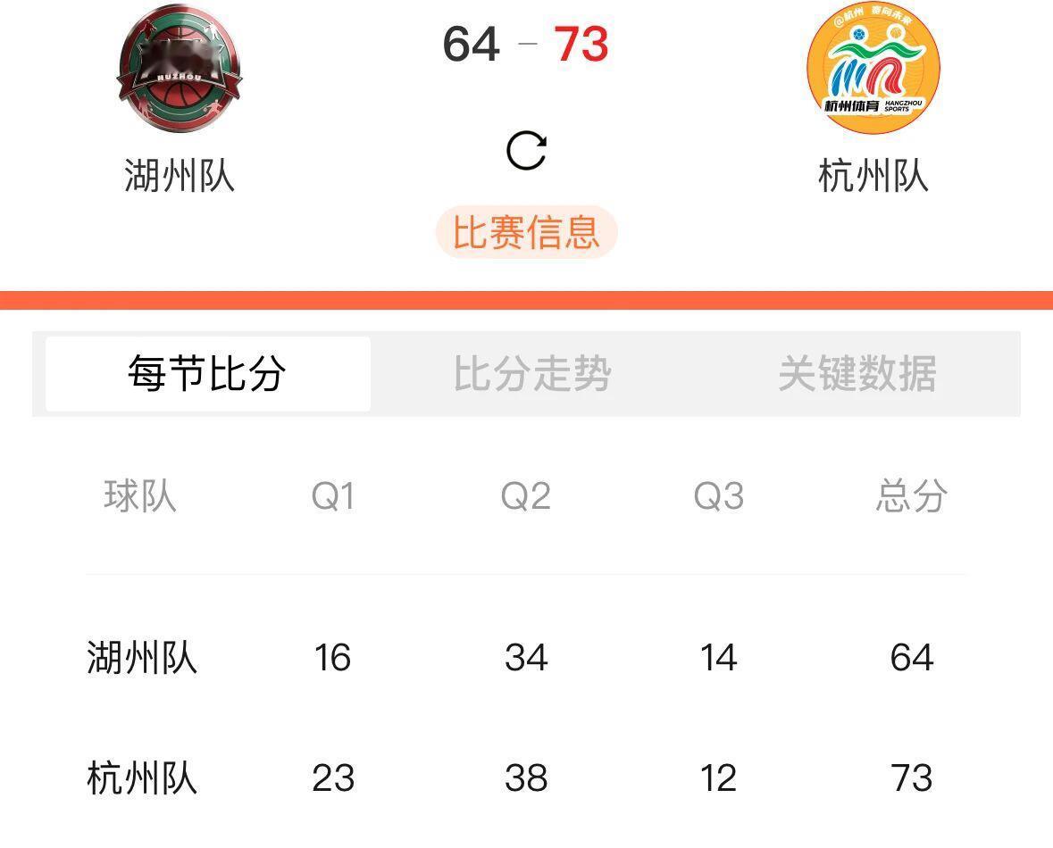 杭州队真是人才辈出,沈许斌都要被弃用了? 杭州与湖州的比赛,确实也没啥悬念,湖州依旧是詹姆斯刘卓拿下全队最高数据,得分篮板助攻都是一人包揽,这样也注定了刘卓打得很辛苦,球队却赢不了,因为对手是杭州联队,真打不过啊! 昨天杭州双塔算是打出来了,包薷升在最近几场比赛,出场时间一场比一场多,表现也是越来越好了,最主要的是他的强硬,在刘雨昊和沈许斌身上看不到的强硬感! 在沈许斌,赵哲轩发挥不佳的情况下,其他球员能够站出来,也是杭州队底蕴强的体现,包薷升拿下15分12板3助,陈洋三分6中3,拿下14分!杭州最终也是73-64小胜湖州,拿下五连胜! 除了温州队,基本没人能拦下杭州队了!杭州队 湖州队