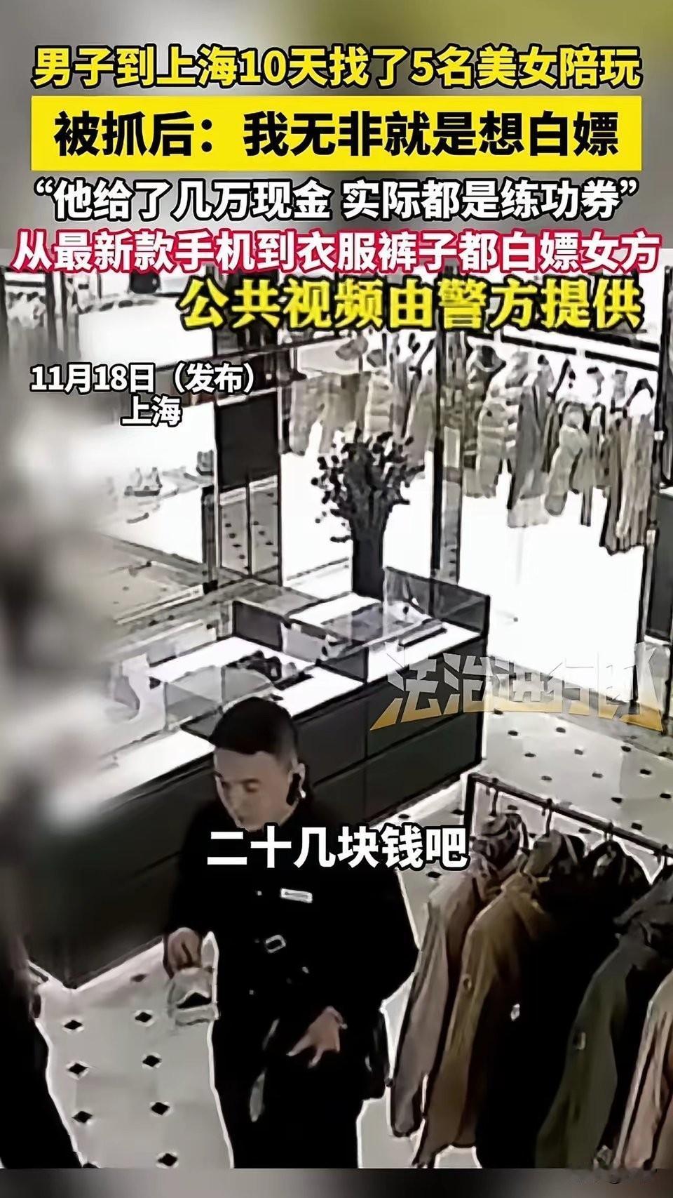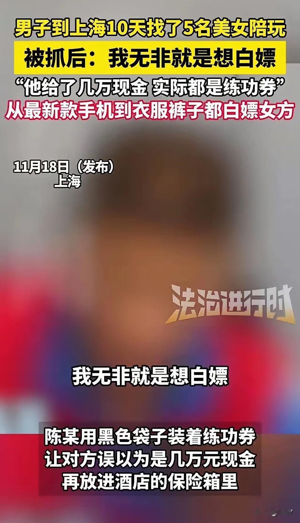 男子在上海找了5名美女陪玩, 实现了一分钱不花让美女都掏钱, 用黑色塑料袋装了好几万现金, 放在了酒店保险柜, 这让几名美女觉得他肯定有钱, 结果陪他逛街购物, 就连酒店都是她们出的钱, 这些女孩为了得到那几万块, 给男子买了衣服和手机, 男子把她们玩的团团转, 就是贪心害了她们, 女贪财男好色, 双向奔赴的旅行, 结果发现男子的塑料袋装的都是练功劵,这才愤怒报了叔叔, 还真是聪明反被聪明误, 只有骗子才能满足胃口大的女生! 大家对于男子用一袋子练功劵在上海让5名美女陪他游玩怎么看? 上海男子到上海用练功券白嫖5名女陪玩 上海男陪酒 小伙陪美女吃饭