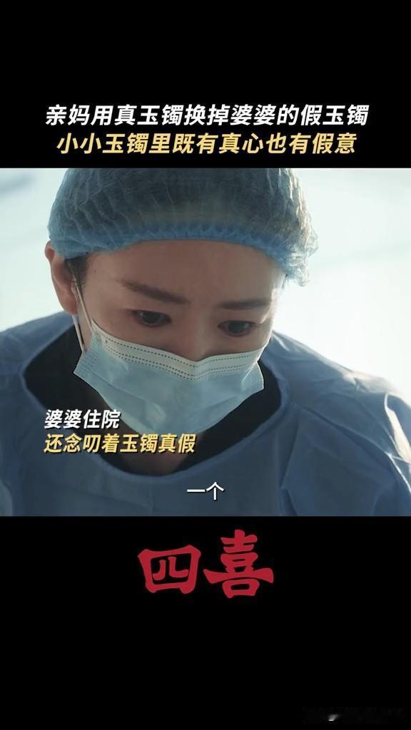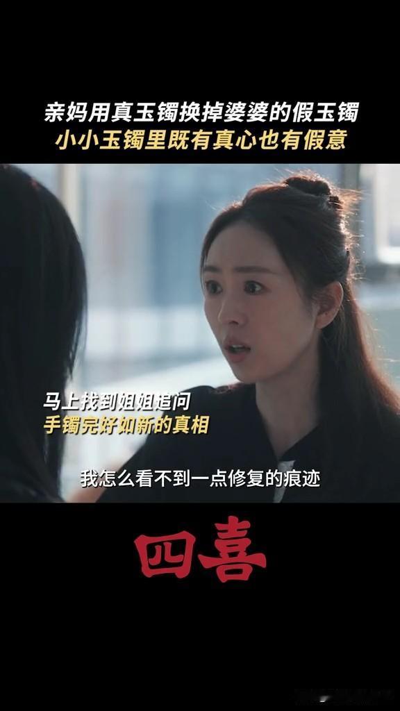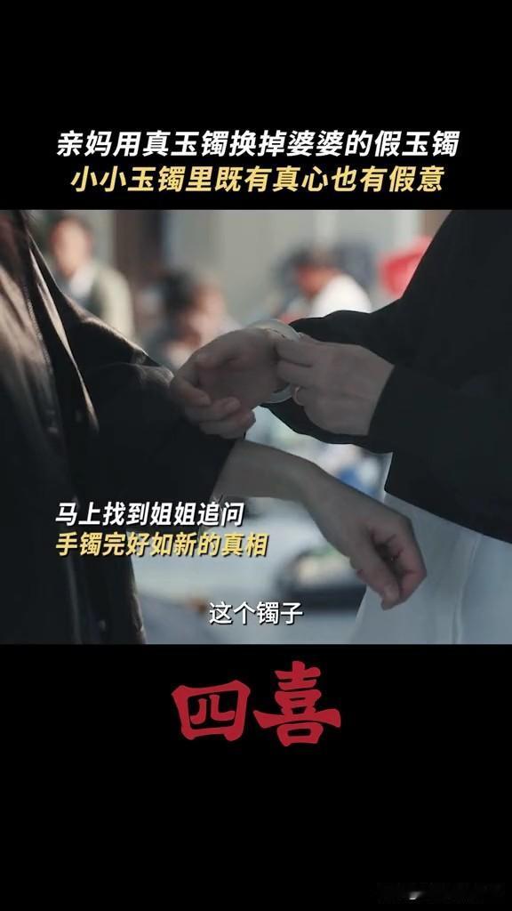 《四喜》明珠终于知道婆婆给的是假镯子了,亲妈花10万给她买了真的,怕她受委屈 原来明珠的公公早就把家里的传家宝镯子给掉包了,真的给了小三的儿子,假的给了明珠戴着 明辉不小心打碎了镯子,明珠拿去修,结果意外发现镯子是假的,喻静香怕亲生女儿明珠在婆家难做,所以花了儿媳妇的彩礼10万块钱,给女儿买了一个一模一样的 要不是小三打上门,明珠可能一辈子也不知道婆婆给她的镯子是假货吧! 搞半天,豪门婆家烂摊子一大推,还要明珠收拾